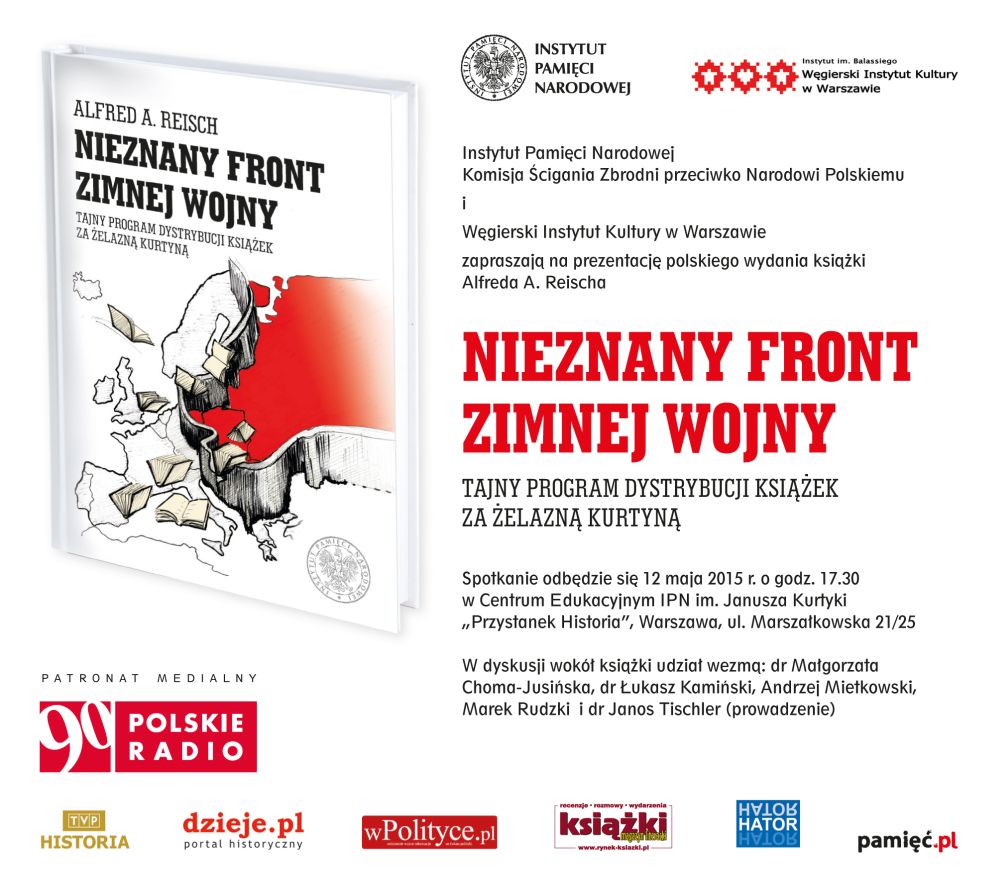 Instytut Pamięci Narodowej – Komisja Ścigania Zbrodni przeciwko Narodowi Polskiemu i Węgierski Instytut Kultury w Warszawie zorganizował prezentację polskiego wydania książki Alfreda A. Reischa „Nieznany front zimnej wojny. Tajny program dystrybucji książek za żelazną kurtyną”. Spotkanie odbyło się 12 maja 2015 r. w Centrum Edukacyjnym IPN im. Janusza Kurtyki „Przystanek Historia” w Warszawie, przy ul. Marszałkowskiej 21/25