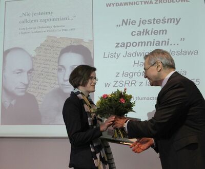 Nagrody Historyczne POLITYKI 2015 przyznane! W kategorii wydawnictwa źródłowe Jury przyznało nagrodę Małgorzacie Ruchniewicz za opracowanie, wstęp i tłumaczenie listów Jadwigi i Bolesława Haberów z łagrów i zesłania w ZSRR z lat 1946–1955 „Nie jesteśmy całkiem zapomniani...” (Instytut Pamięci Narodowej, Warszawa 2014). Jak argumentowali jurorzy, ciekawie napisany wstęp, poświęcony korespondencji w warunkach zesłania, opowiada o ważnych kwestiach dotyczących m.in. psychiki i emocji zesłańców, zachowań w sytuacjach skrajnych, o różnych formach odczuwania odosobnienia, codzienności obozowej i roli korespondencji w czasie zesłania.