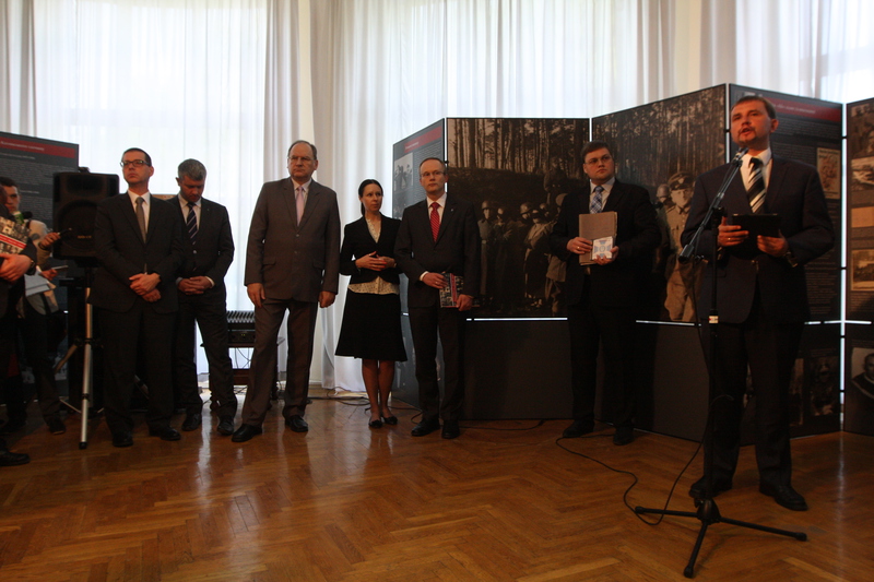 Wizyta polskiej delegacji związana była z przygotowywaną od kilku miesięcy prezentacją ukraińskiej wersji wystawy „Akcja AB – Katyń. Zagłada polskich elit”. Jej uroczyste otwarcie miało miejsce w Narodowym Muzeum Historii Ukrainy. Podczas uroczystości prezes Kamiński zwrócił uwagę na wyjątkowe miejsce, jakie w polskiej pamięci zajmuje Zbrodnia Katyńska. Wyraził jednocześnie przekonanie, że prezentacja ukraińskiej wersji wystawy IPN stanowi ważny krok na drodze do wzajemnego zrozumienia historii sąsiedniego narodu przez Polaków i Ukraińców. Szef Ukraińskiego Instytutu Pamięci Narodowej dr Wołodymyr Wiatrowycz wskazał na podobieństwa sowieckiego i niemieckiego systemu totalitarnego, powołując się na zaprezentowane na wystawie materiały. Podczas uroczystości Ihor Kułyk, dyrektor Głównego Archiwum Państwowego Służby Bezpieczeństwa Ukrainy, przekazał na ręce prezesa IPN kopie materiałów archiwalnych dotyczących zbrodni katyńskiej, odnalezionych w ostatnich dniach w ukraińskich archiwach. Znalazły się w nim m.in. spisy nazwisk oficerów z obozu w Starobielsku oraz dokumenty obrazujące działania KGB wokół miejsca pochowania ofiar Zbrodni Katyńskiej w podcharkowskich Piatichatkach.