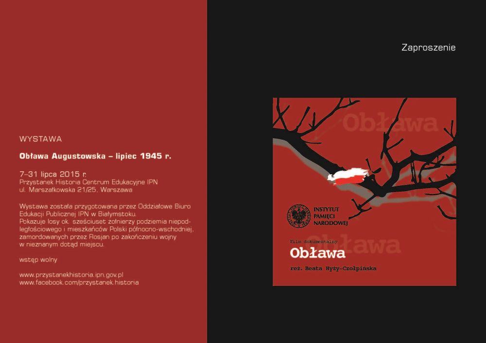 Wystawę „Obława Augustowska – lipiec 1945 r.” przygotowało Oddziałowe Biuro Edukacji Publicznej IPN w Białymstoku.