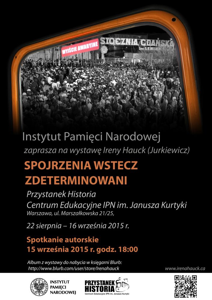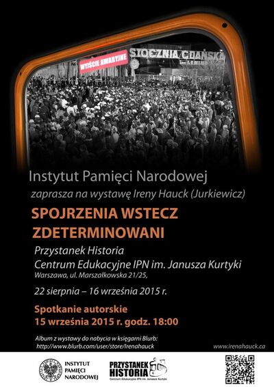 Przystanek Historia – Centrum Edukacyjne IPN im. Janusza Kurtyki w Warszawie serdecznie zaprasza na wystawę zdjęć Ireny Hauck „Spojrzenia wstecz. Zdeterminowani”, prezentującą obraz współczesnej Polski na tle fotografii Polski z lat 70. i 80. Wystawę można oglądać od 22 sierpnia do 16 września 2015.