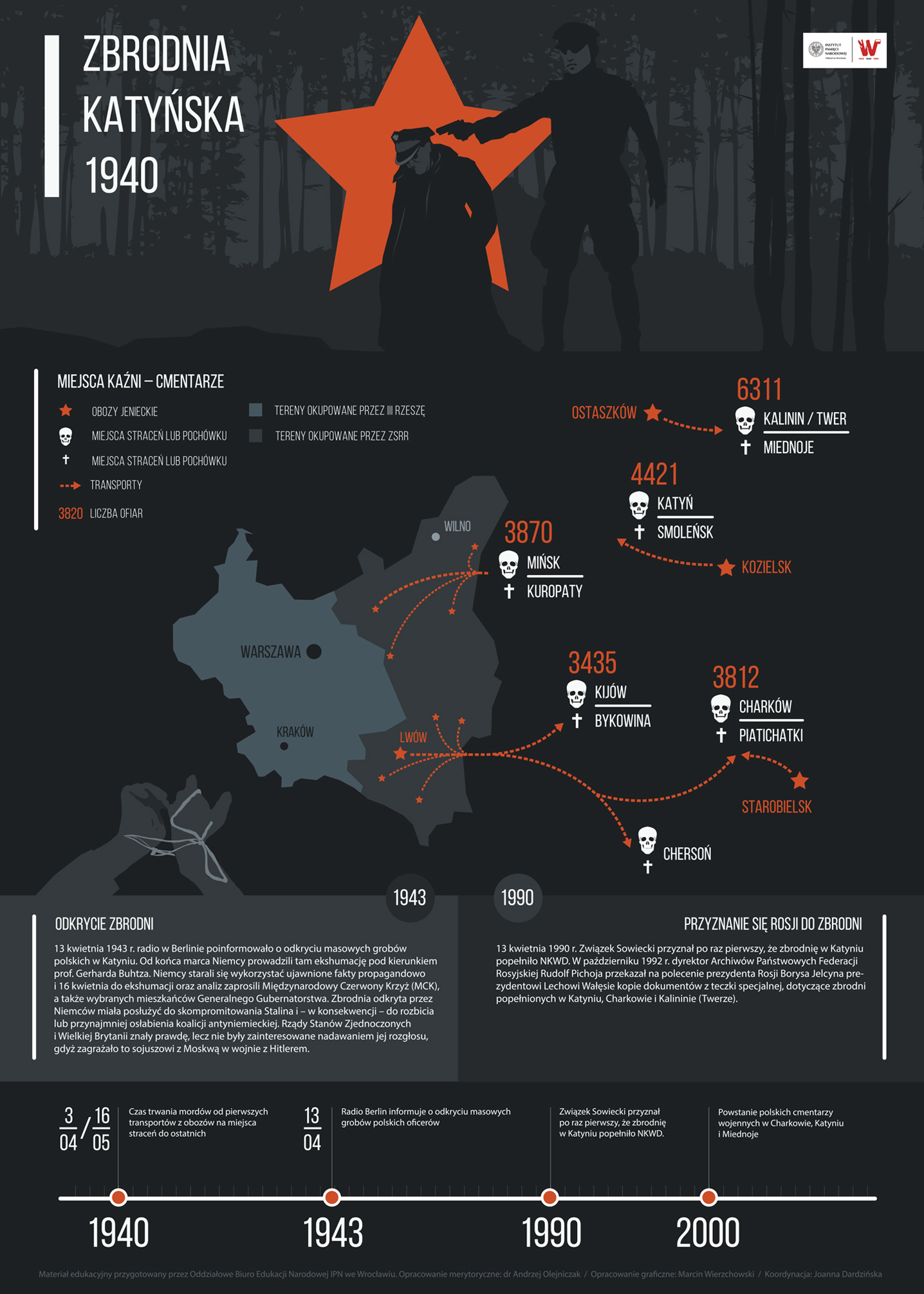 Zapraszamy do zapoznania się z pakietem czterech infografik przygotowanych przez Oddziałowe Biuro Edukacji Narodowej IPN we Wrocławiu, dotyczących zbrodni katyńskiej: