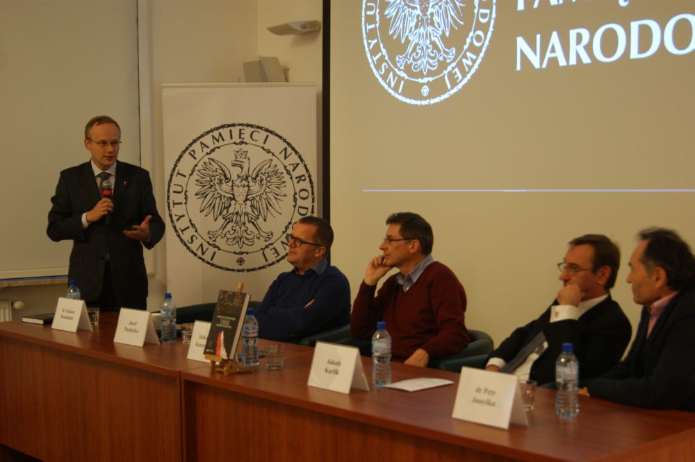 W spotkaniu wzięli udział: dr Łukasz Kamiński – Prezes IPN, Jego Ekscelencja Jakub Karfík – Ambasador Republiki Czeskiej, dr Petr Janyška – Dyrektor Czeskiego Centrum, Josef Pazderka – autor, Aleksander Kaczorowski (prowadzenie).