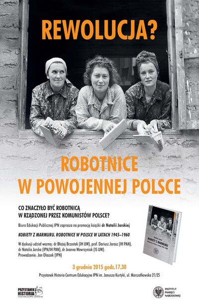 Biuro Edukacji Publicznej IPN zaprasza na promocję książki dr Natalii Jarskiej Kobiety z marmuru. Robotnice w Polsce w latach 1945–1960.