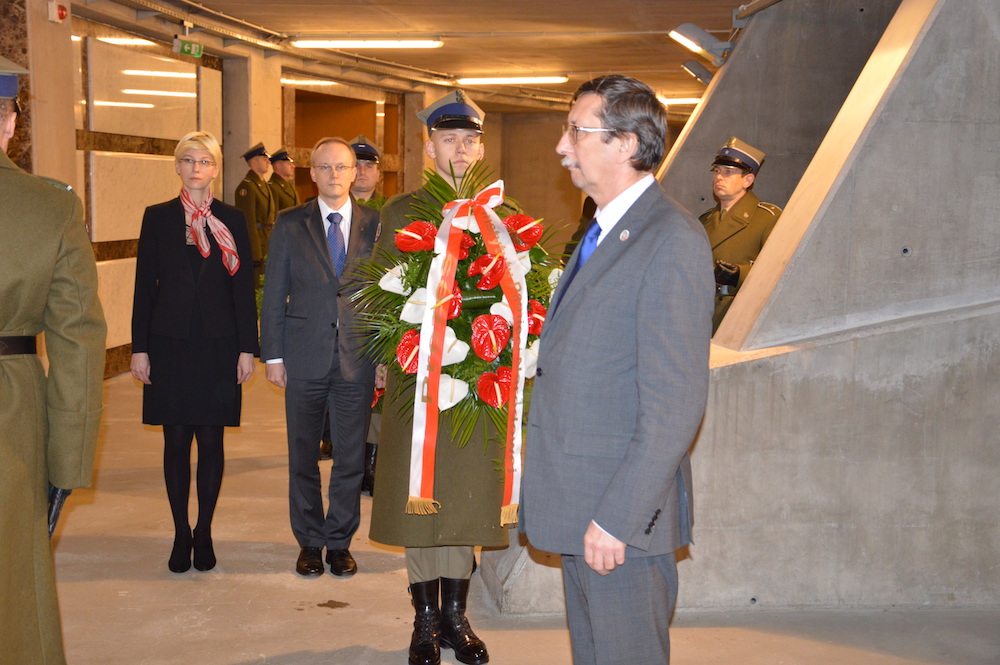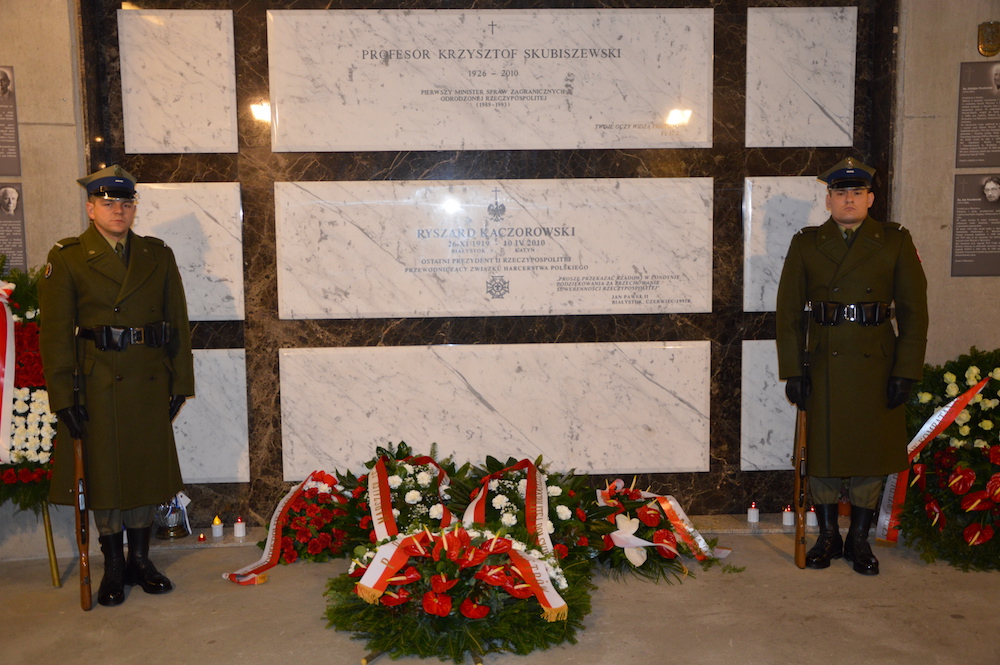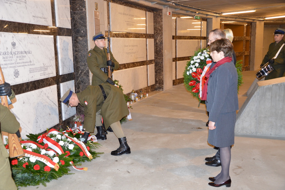 Przed południem Prezes IPN wspólnie zprzedstawicielami Prezydenta, Sejmu, Senatu oraz Rady Ministrów złożył wieniecna grobie Prezydenta Ryszarda Kaczorowskiego.