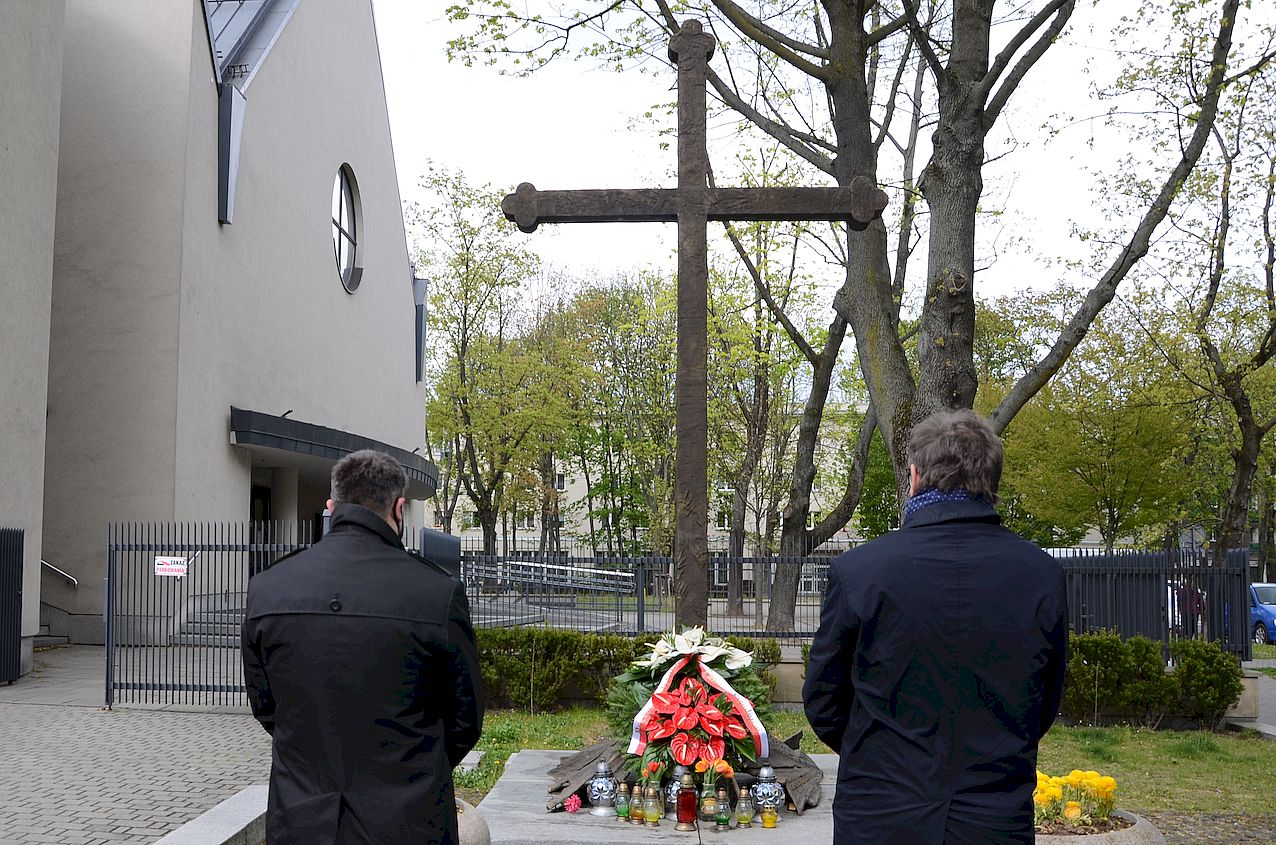 Prezes IPN dr Jarosław Szarek złożył kwiaty pod pomnikiem Krzyża Nowohuckiego. Fot. Janusz Ślęzak (IPN) -
