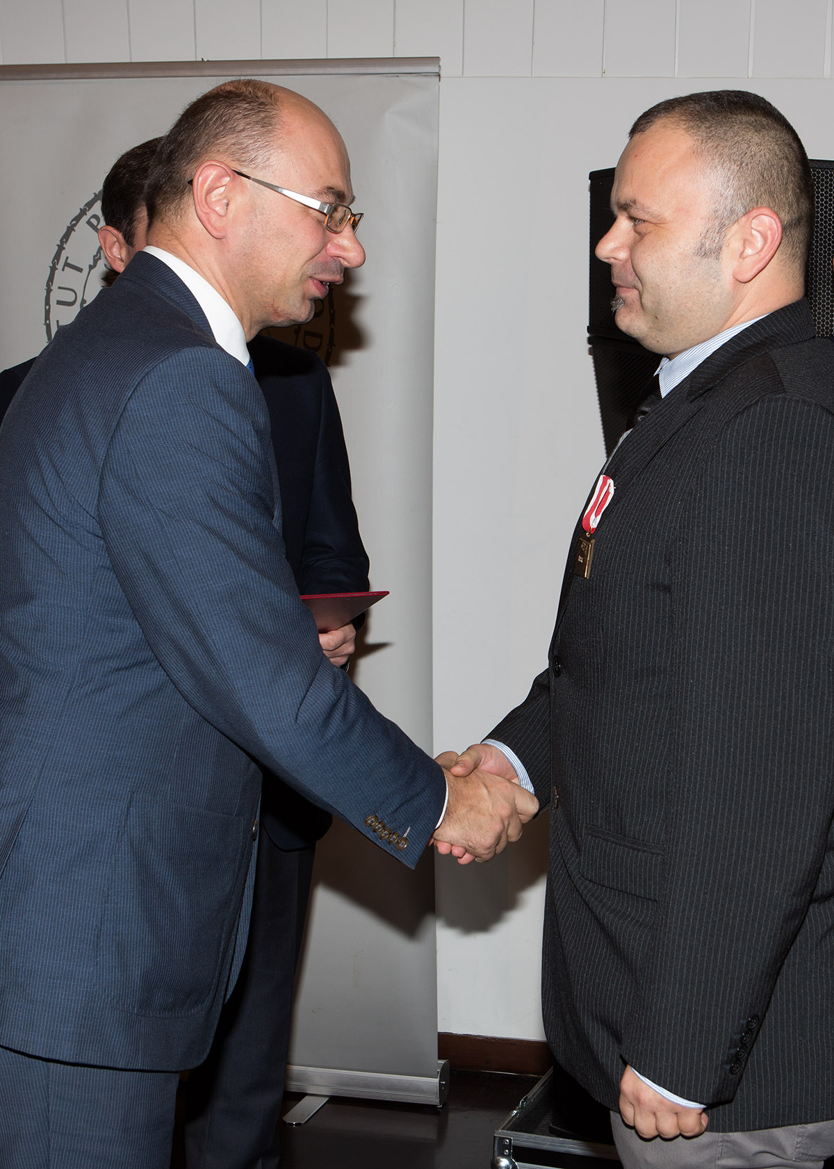 dr Grzegorz Klebowicz odbiera odznaczenie z rąk wiceprezesa IPN dr. Mateusza Szpytmy -