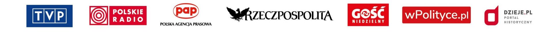 Patroni medialni: Telewizja Polska, Polskie Radio, Polska Agencja Prasowa, Rzeczpospolita, Gość Niedzielny, wPolityce.pl, Dzieje.pl.