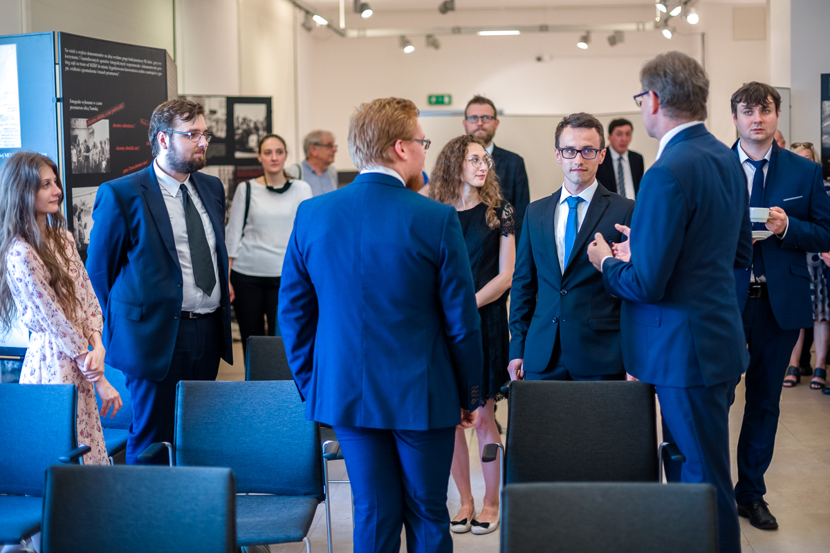 W uroczystości wzięli udział: dr Jarosław Szarek – prezes Instytutu Pamięci Narodowej, prof. Marek Kornat – przewodniczący Komisji Konkursowej oraz prof. Krzysztof Kosiński – przedstawiciel IH PAN.