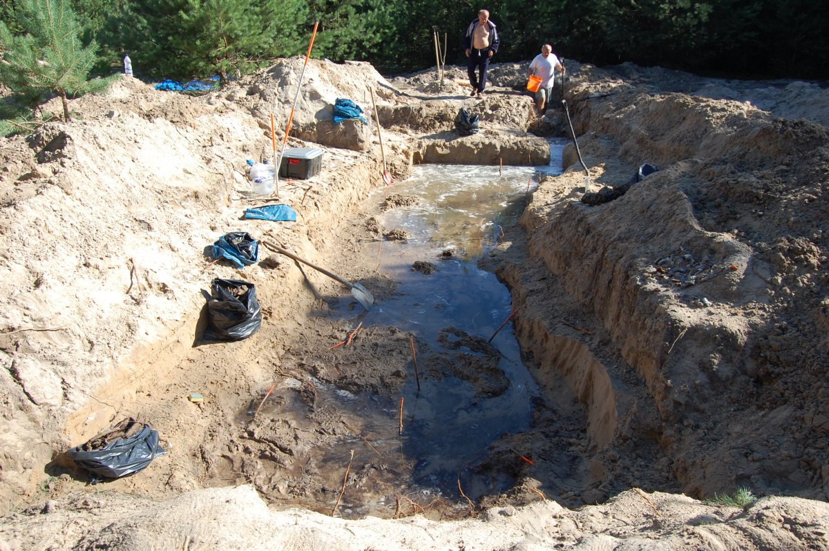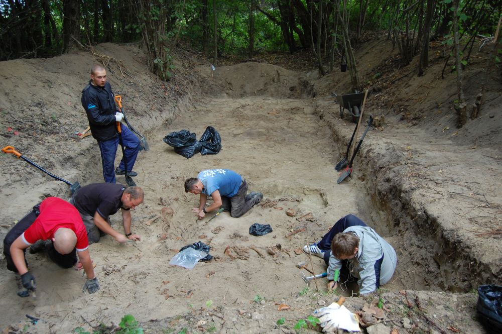 Las pod Sokołem, płytki dół śmierci zawierający szczątki 3 osób (2011) -