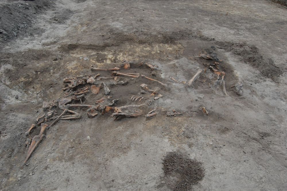 „Trupie pole”, wydobyte zniszczone kości długie, głównie kobiet. Kości bardzo małych dzieci (do lat 3–5) nie zachowały się (2011) -