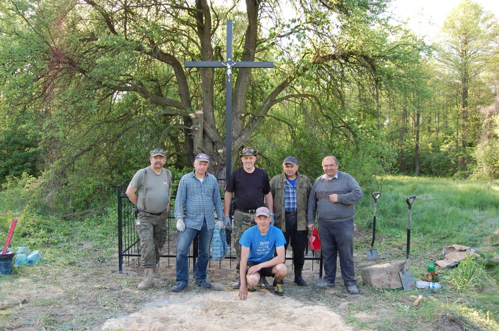 Ostrówki, po ekshumowaniu szczątków 33 Polaków, w miejscu ich męczeńskiej śmierci za zgodą władz ukraińskich stanął krzyż (2015) -