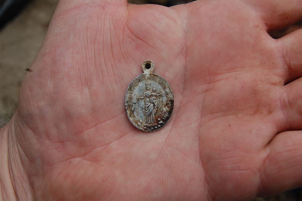 Ostrówki, medalik znaleziony w dole śmierci (2015) -