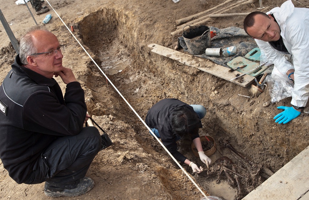 Stary Grodków. Archeolog przy pracy. Eksploracja szczątków ludzkich -