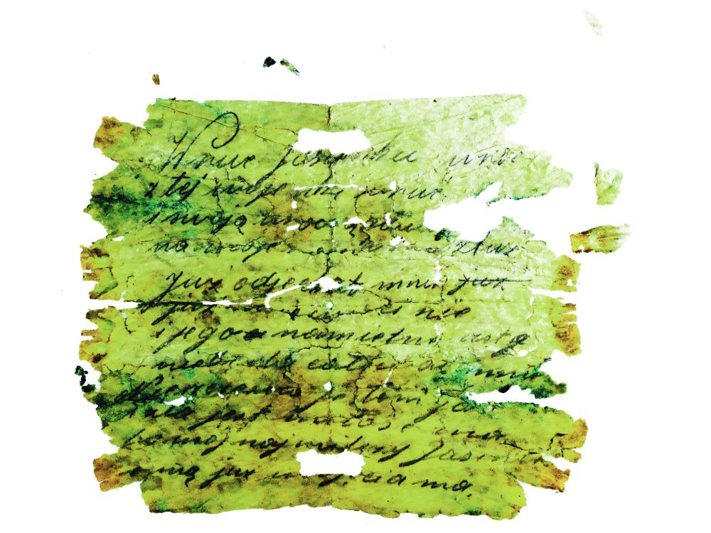 Stary Grodków. Kartka odnaleziona w papierośnicy przy jednej z ofiar z zapisanym tekstem piosenki „Wróć, Jasieńku, wróć” -