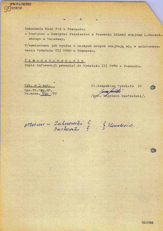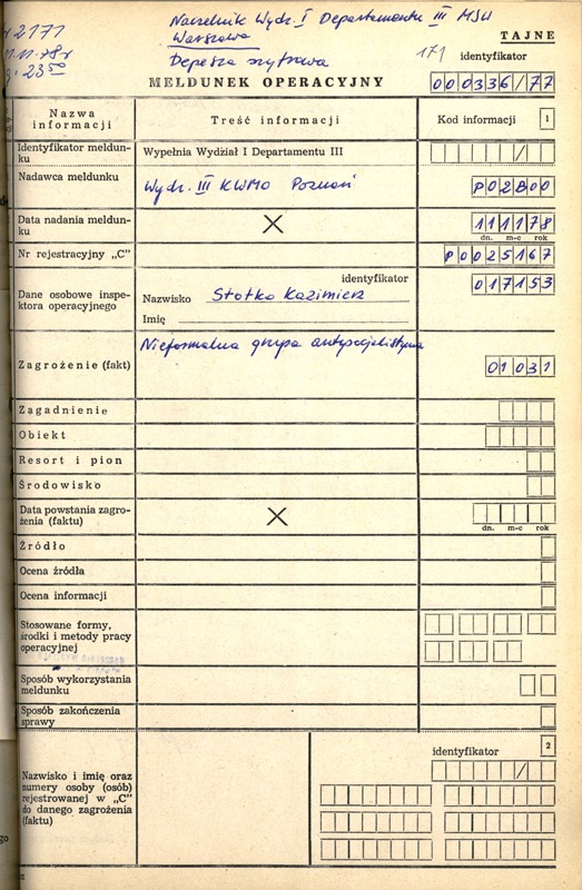 8–11: IPN Po 08/1677 – dokumentacja SOR kryp. „Hazardziści” dot. kontroli operacyjnej Restytuta Staniewicza, materiały związane z zabezpieczeniem 60. oraz 61. rocznicy odzyskania niepodległości, analiza nastrojów społecznych w Poznaniu w przededniu i w czasie święta niepodległości w 1978 r.