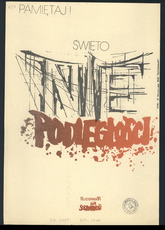 20: IPN Po 1046/632 – zbiory biblioteki Kórnickiej PAN, plakat o treści: Pamiętaj! Święto Niepodległości 11 listopada ’81 „Solidarność”. Druk Zarządu Regionu Małopolska NSZZ „Solidarność”.
