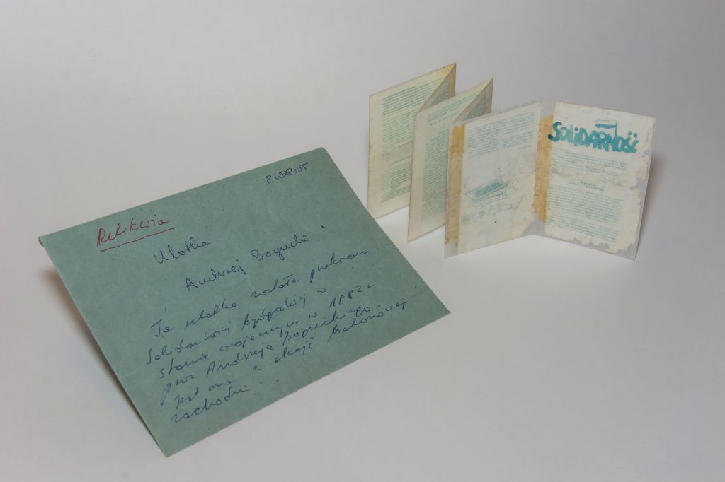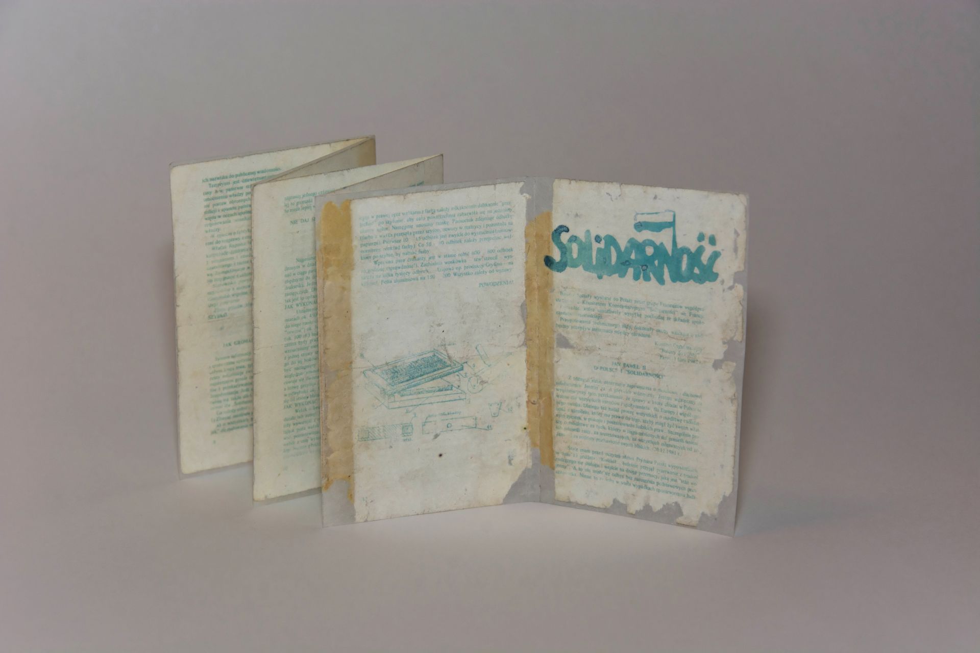 Ulotka, która w marcu 1982 r. trafiła do Polski w okolice Bydgoszczy w ramach akcji balonowej zorganizowanej przez grupę Francuzów współpracujących z działającym w Paryżu Komitetem Koordynacyjnym „Solidarność”. W marcu 1982 r. z Bornholmu, na plaży w miejscowości Dueodde, wypuszczono 10 tysięcy pomarańczowych balonów z napisem „Solidarność”. Do każdego dołączono pojemnik o wadze 50 gramów, zawierający pięć kompletów 12-stronicowej ulotki. Składana, niewielkich rozmiarów (5,5 na 33 cm) broszurka wykonana została z cieniutkiego papieru. Niebieski druk miał umożliwić odczytanie treści nawet wtedy, gdyby przesyłka uległa zamoczeniu. Zawiera m.in. instrukcję, jak w prosty sposób drukować ulotki; cytaty z wystąpień papieża Jana Pawła II z grudnia 1981 r. i ze stycznia 1982 r.; deklarację prawników z Uniwersytetu Jagiellońskiego o nielegalności wprowadzenia stanu wojennego; informacje na temat losów „Solidarności” na obczyźnie, sytuacji w Polsce; karykatury postaci reżimu oraz materiały instruktażowe do prowadzenia walki opozycyjnej, np. schemat ukazujący, jak zbudować własny powielacz i wykonać proste druki. Ulotka balonowa przekazana przez dra Andrzeja Boguckiego, bydgoskiego historyka, działacza opozycji demokratycznej.