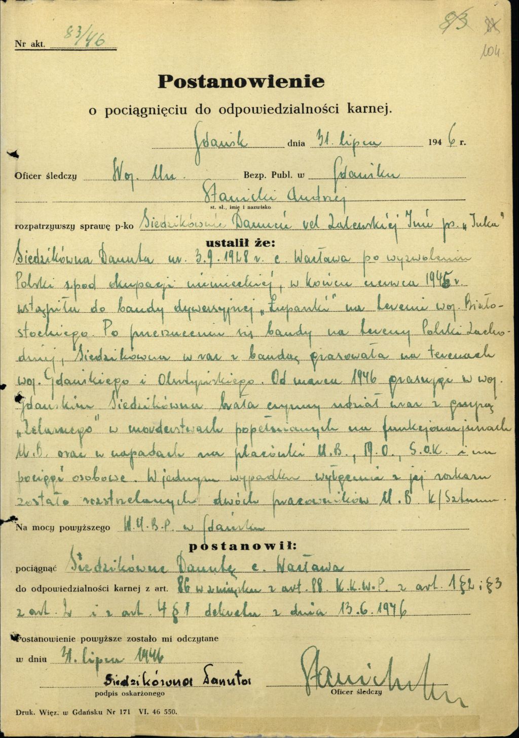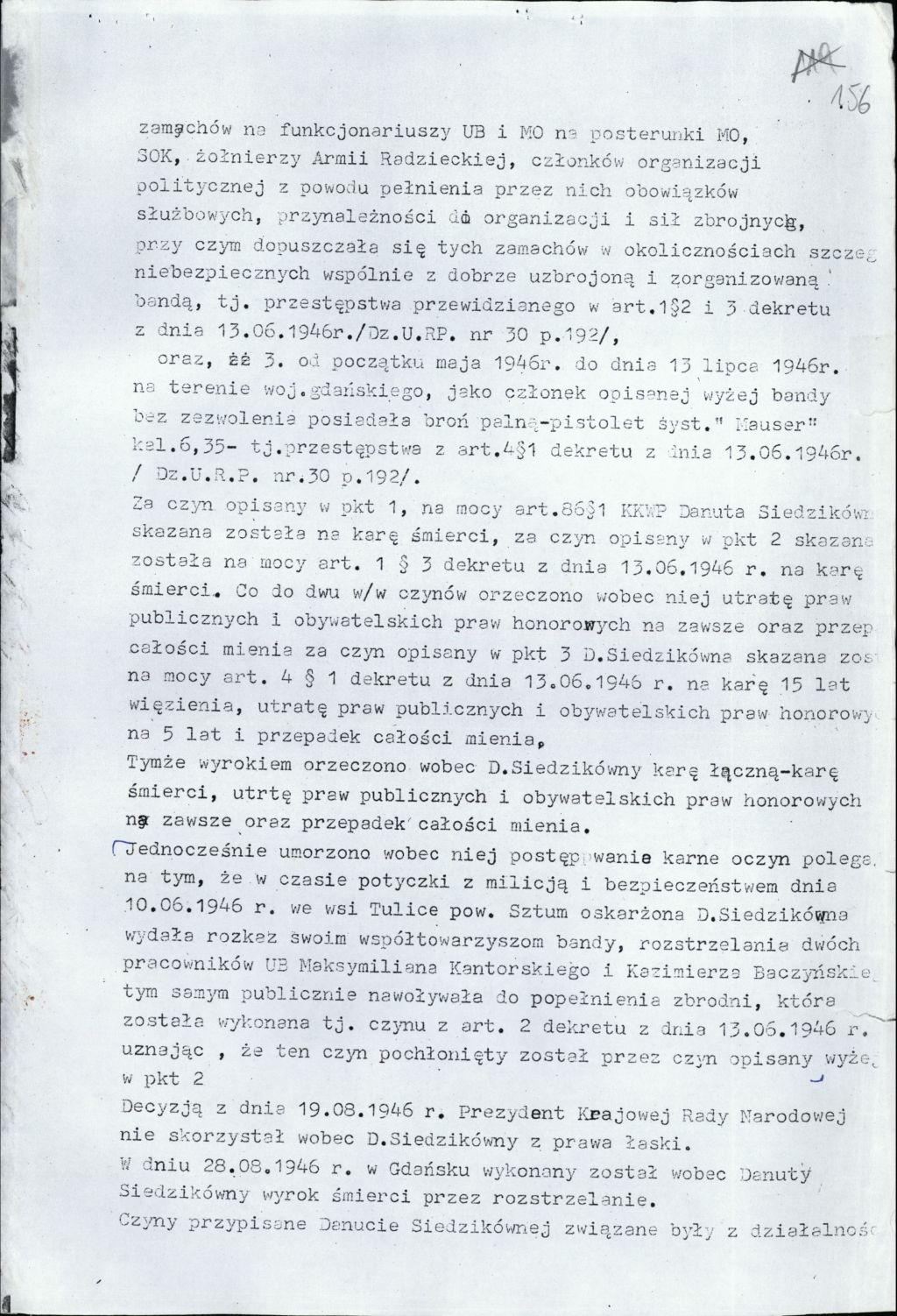 Opublikowane wyżej materiały pochodzą z akt sprawy karnej prowadzonej przez Wojskowy Sąd Rejonowy w Gdańsku przeciwko Danucie Siedzikównie pseudonim „Inka”. Zawierają: postanowienie o zastosowaniu środka zapobiegawczego, protokół konfrontacji ze świadkiem, postanowienie o pociągnięciu do odpowiedzialności karnej, zapiski znalezione przy Danucie Siedzikównie, wyrok Wojskowego Sądu Rejonowego w Gdańsku, prośbę o łaskę napisaną przez adwokata Danuty Siedzikówny, protokół wykonania wyroku śmierci, postanowienie Sądu Wojewódzkiego w Gdańsku o unieważnieniu wyroku (IPN Gd 323/1).