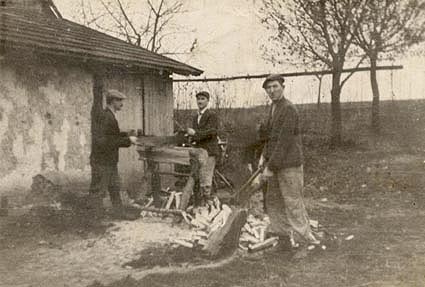 Żydzi z rodziny Szallów w gospodarstwie Józefa i Wiktorii Ulmów. -