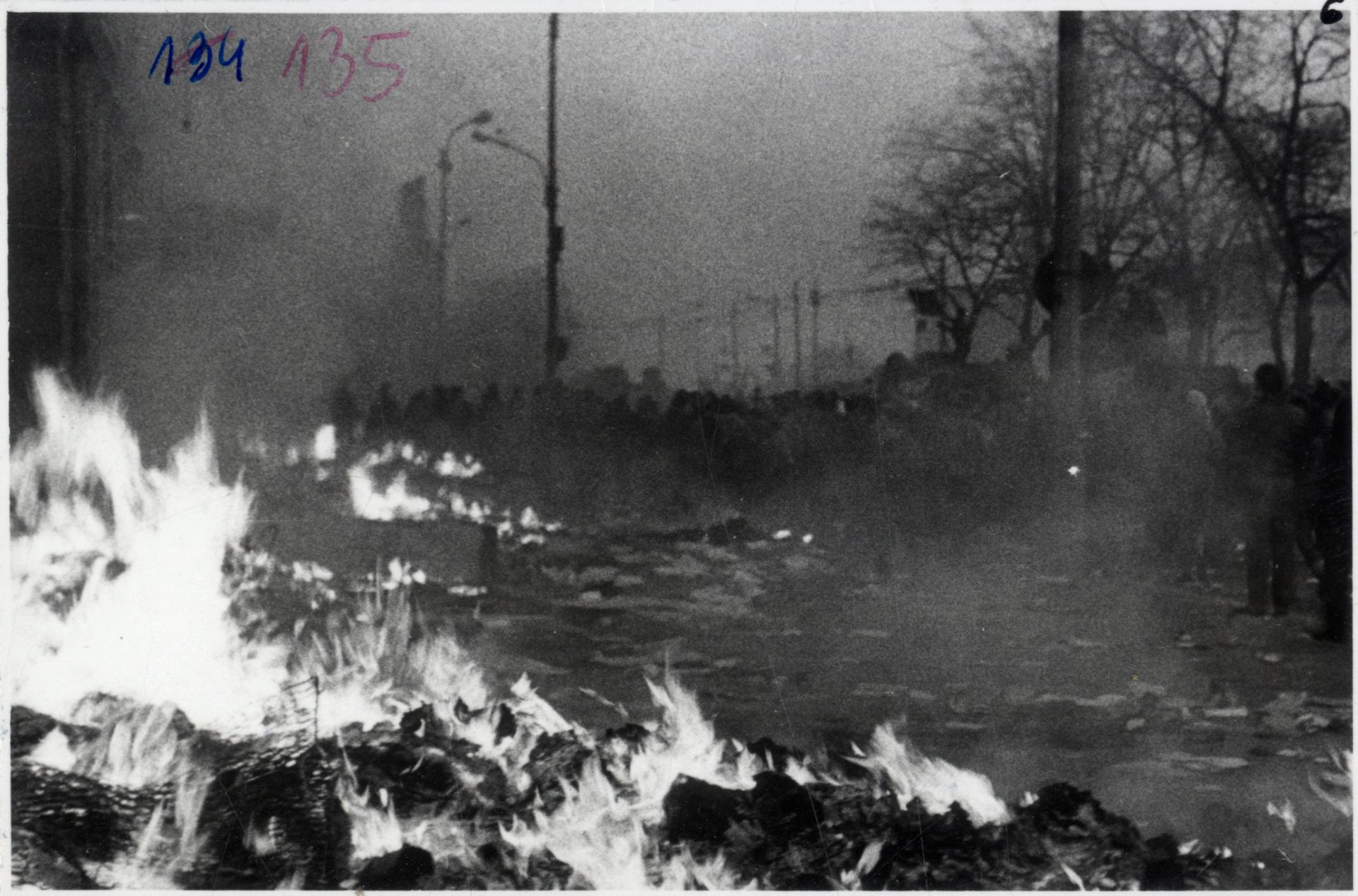 Palenie rzeczy wyrzuconych z siedziby KW PZPR – m.in. dokumentów, książek, mebli oraz maszyn do pisania. (IPN Sz 0012/323 t. 2) -