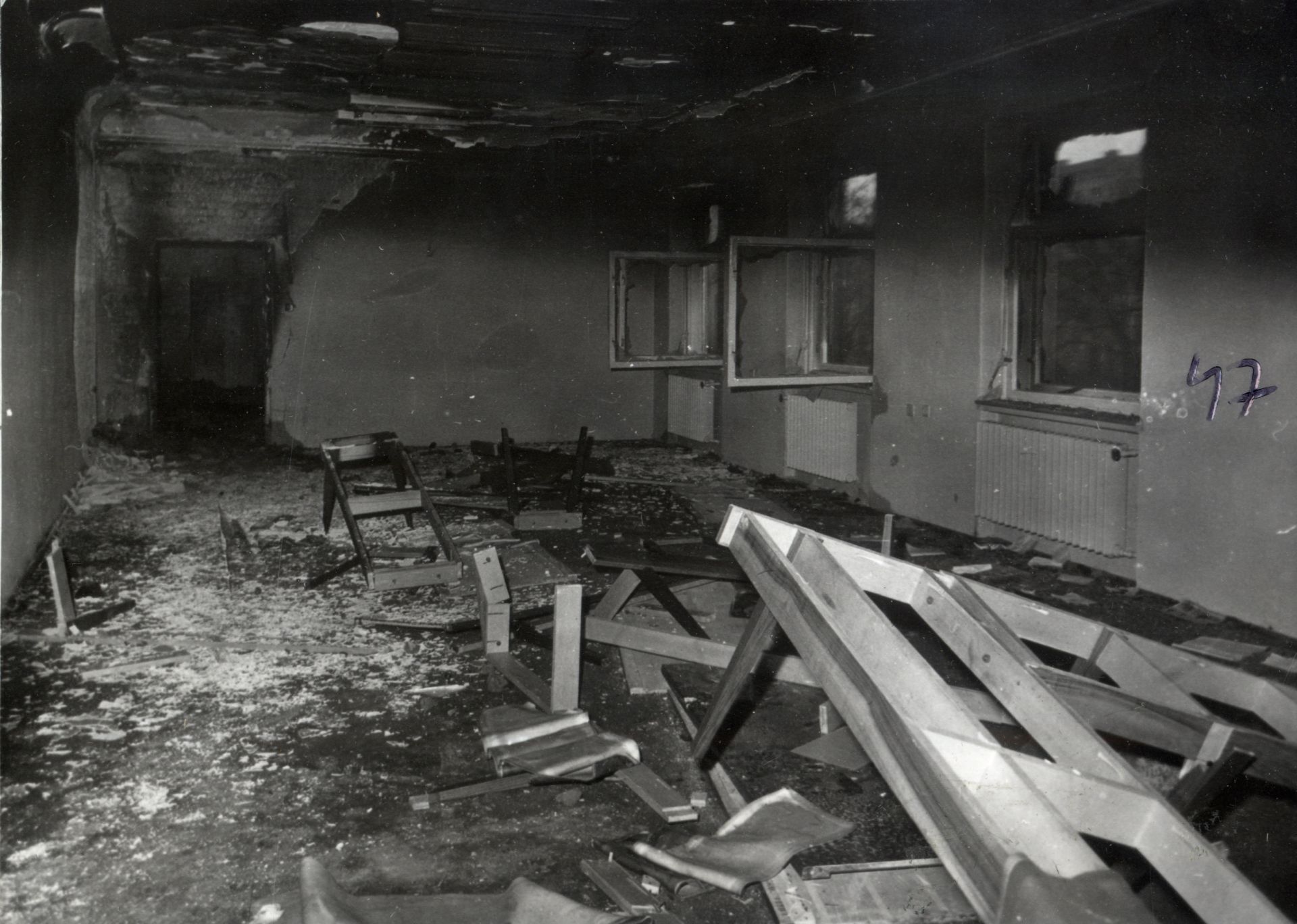 Widoczne zniszczenia w budynku KW PZPR (IPN Sz 0012/323 t. 1) -
