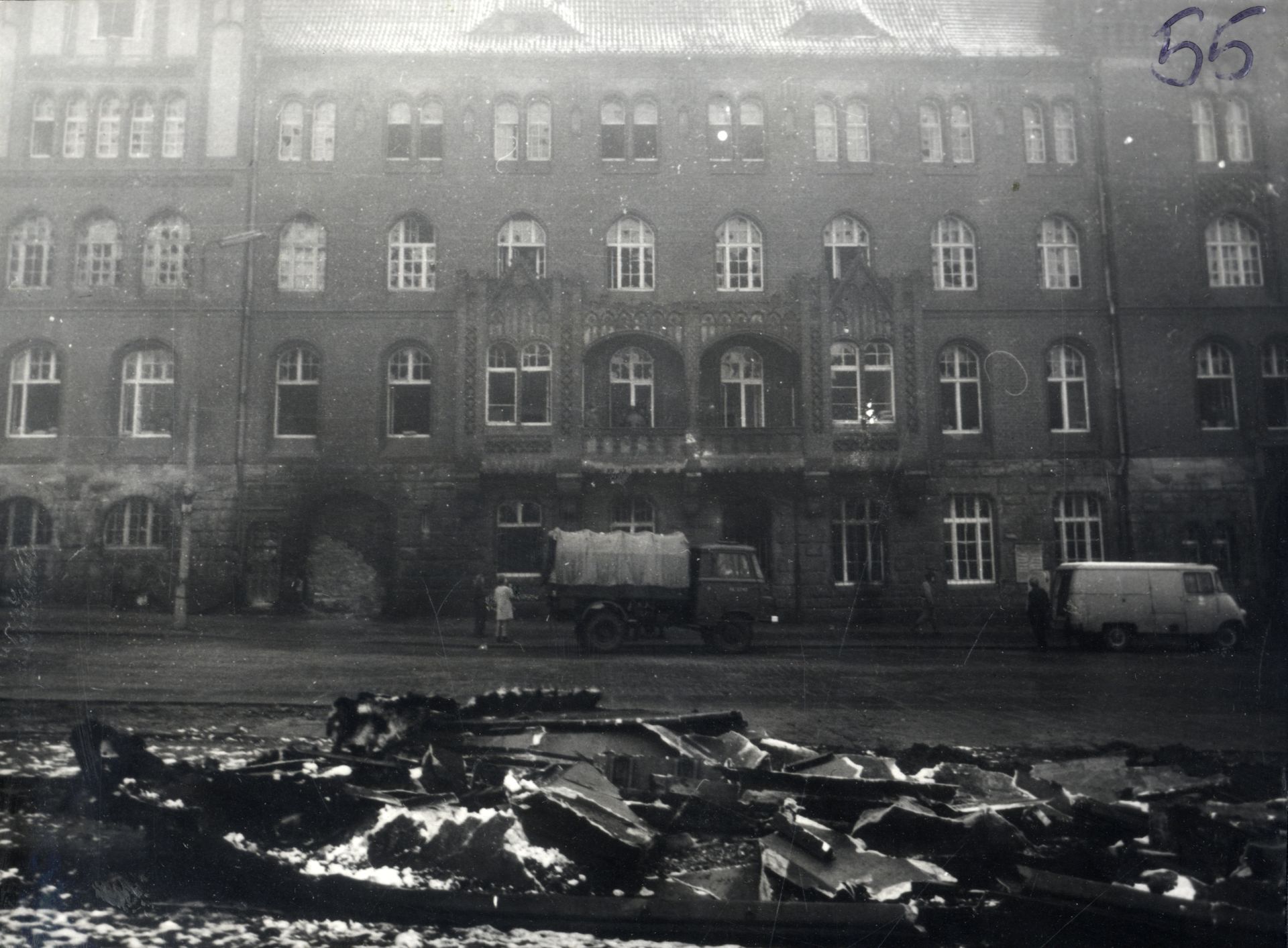 Widok ogólny gmachu KWMO w Szczecinie po wydarzeniach z 17 grudnia 1970 r. (IPN Sz 0012/323 t. 1) -