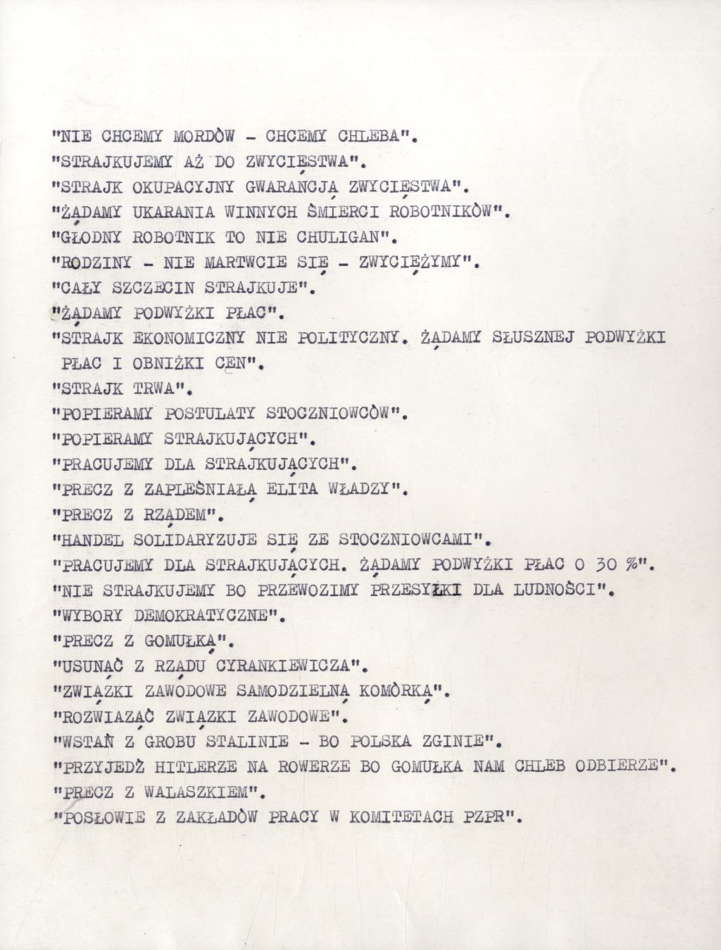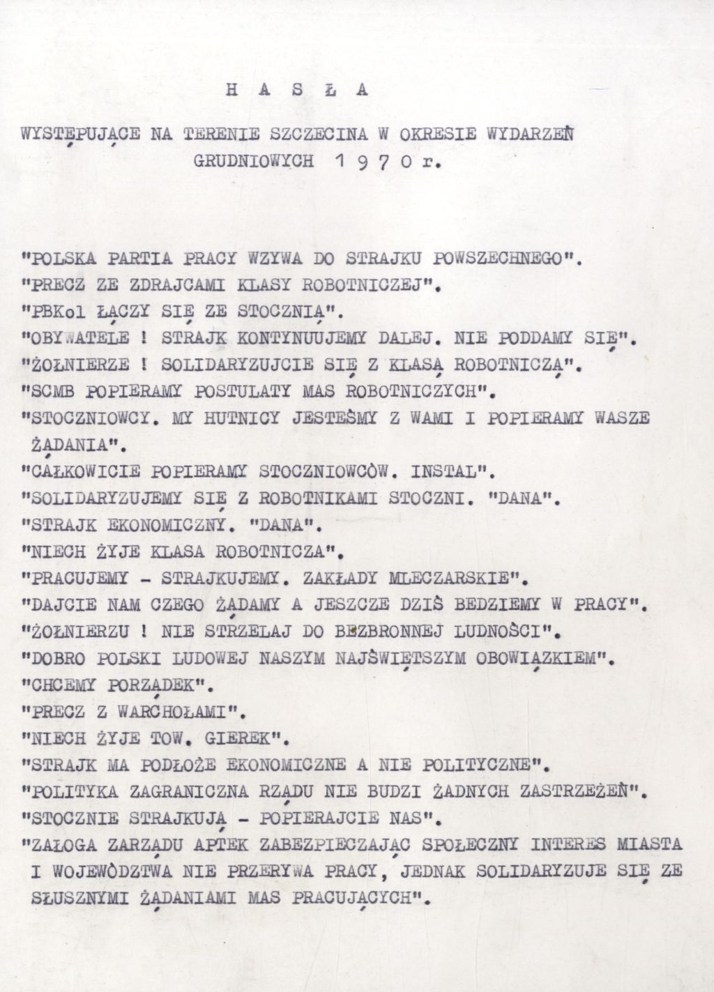 Hasła rozpowszechniane na terenie Szczecina w okresie Wydarzeń Grudniowych 1970 r. (IPN Sz 0012/323 t. 1)