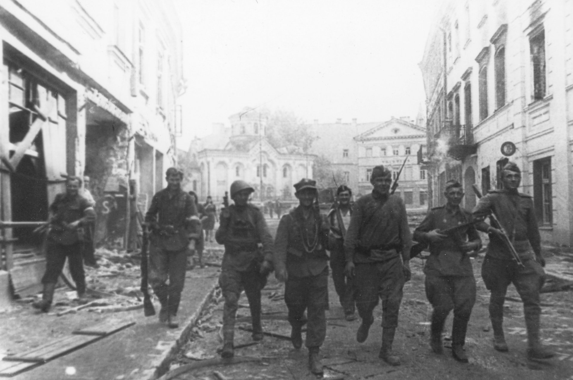 Żołnierze Armii Krajowej i Armii Czerwonej na ulicach Wilna w czasie operacji „Ostra Brama” ( Zbiory własne. P.Niwiński)