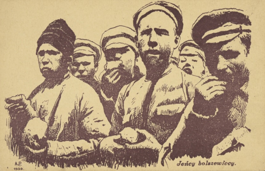 Jeńcy bolszewiccy na pocztówce z 1920 r. Fot. ze zbiorów Biblioteki Narodowej