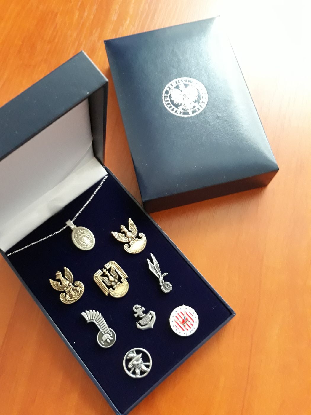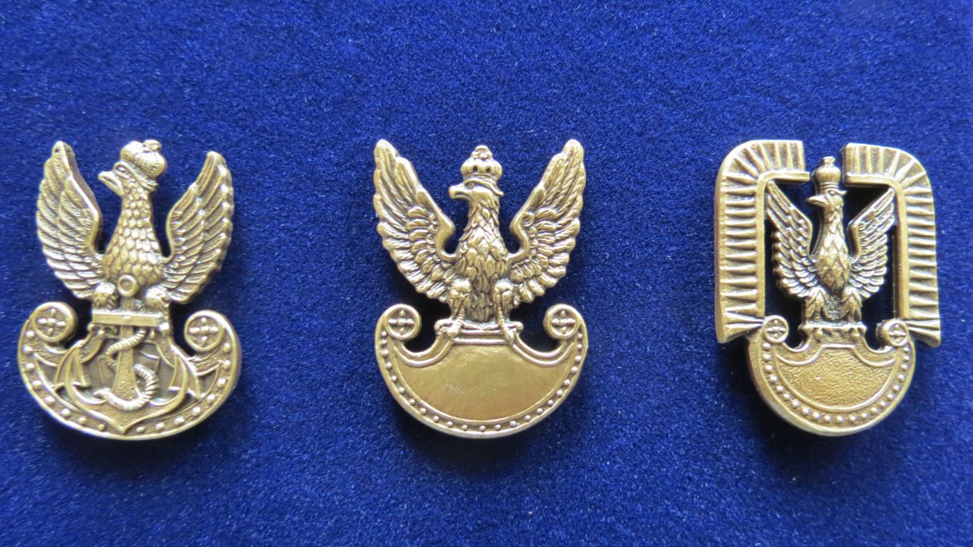 • Przypinki nawiązujące do orłów wojskowych II Rzeczypospolitej. Od lewej: Marynarki Wojennej, wojsk lądowych i lotnictwa wojskowego.