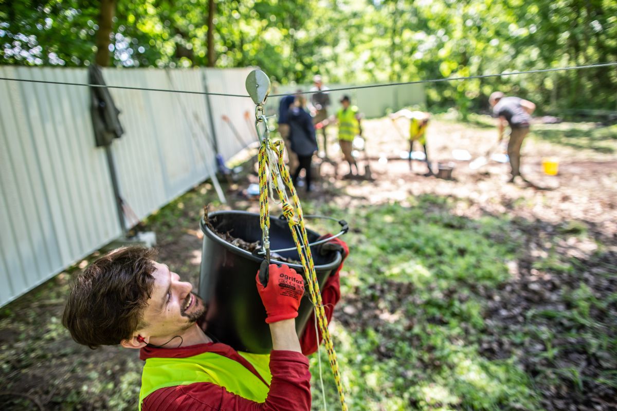 Prace ekshumacyjne prowadzone są przez zespół naukowców z Instytutu Archeologii i Etnologii PAN, Uniwersytetu im. Adama Mickiewicza w Poznaniu, Uniwersytetu Przyrodniczego we Wrocławiu, Uniwersytetu Łódzkiego pod kierunkiem dr. Dawida Kobiałki oraz prokuratorów IPN Oddział w Gdańsku ze wsparciem historyków i pracowników merytorycznych Oddziałowej Komisji Ścigania Zbrodni przeciwko Narodowi Polskiemu w Gdańsku.
