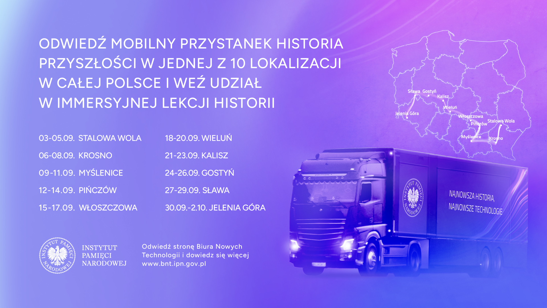 Mobilny Przystanek Historia Przyszłości to miejsce zaprojektowane w formie przestrzennej wystawy, w środku której znajdują się stanowiska z komputerami PC i urządzeniami VR (virtual reality). Elektroniczne gry edukacyjne, stworzone przez Instytut Pamięci Narodowej, nie tylko ukazują historię Polski XX wieku, ale rozwijają również umiejętności strategicznego myślenia, rozwiązywania problemów i współpracy w zespole.