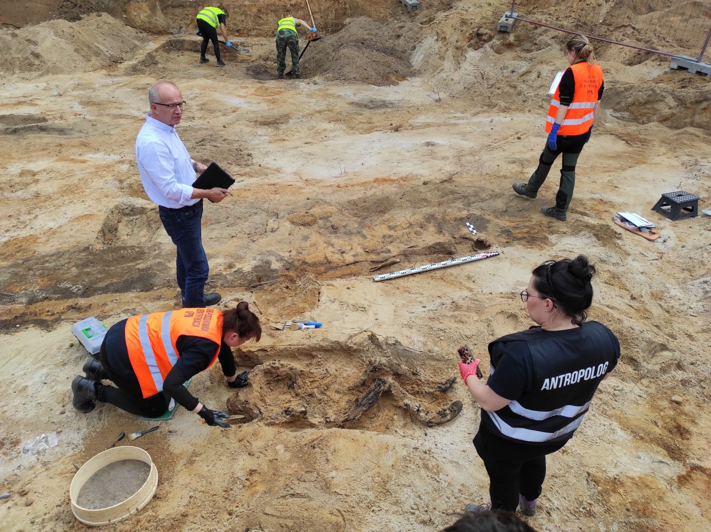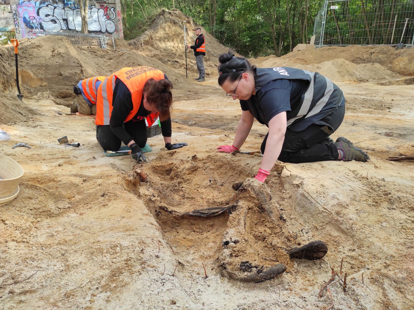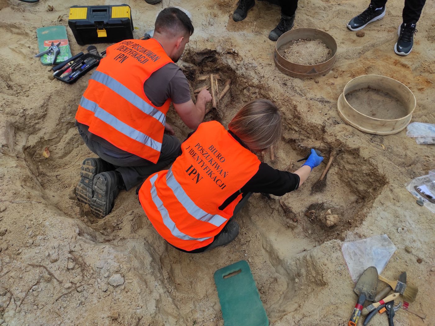 Podczas dotychczasowych dwóch tygodni prac odnaleziono kilka jam grobowych, w których natrafiono na szczątki należące do 9 osób. Znajdowały się przy nich liczne przedmioty osobiste – obuwie, pozostałości ubrań, grzebień, szczoteczka do zębów, protezy zębowe, okulary, dewocjonalia oraz guziki – w tym od wojskowego płaszcza, co pozwala sądzić, że wśród odnalezionych szczątków jest żołnierz.
