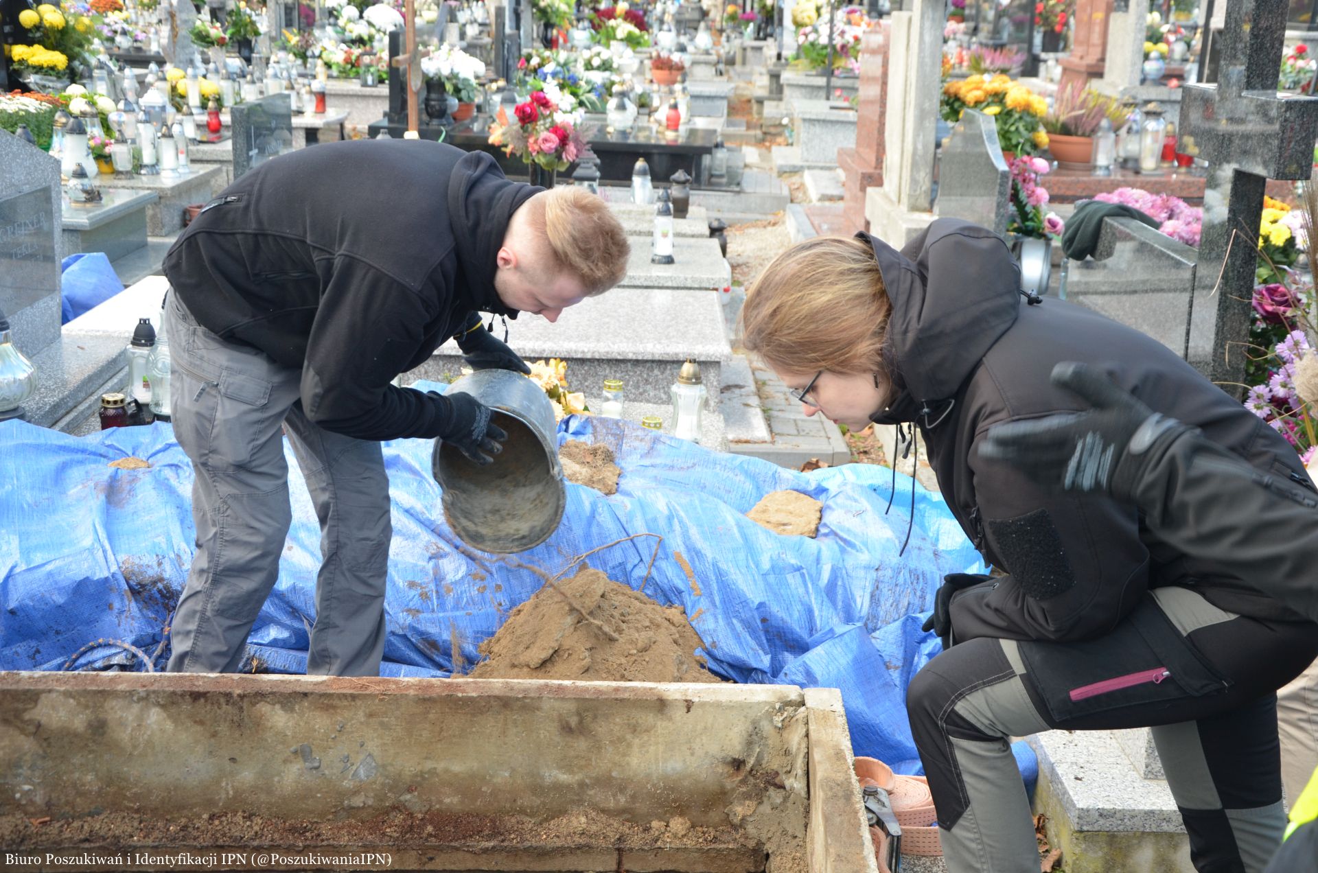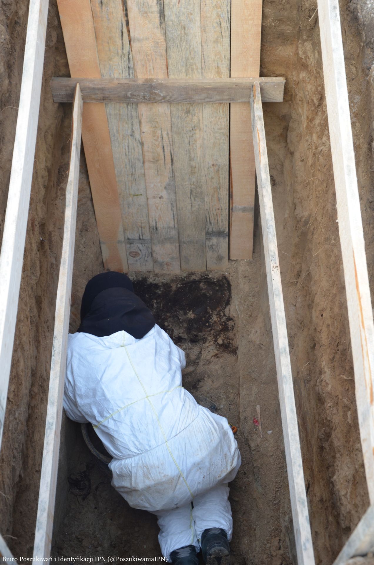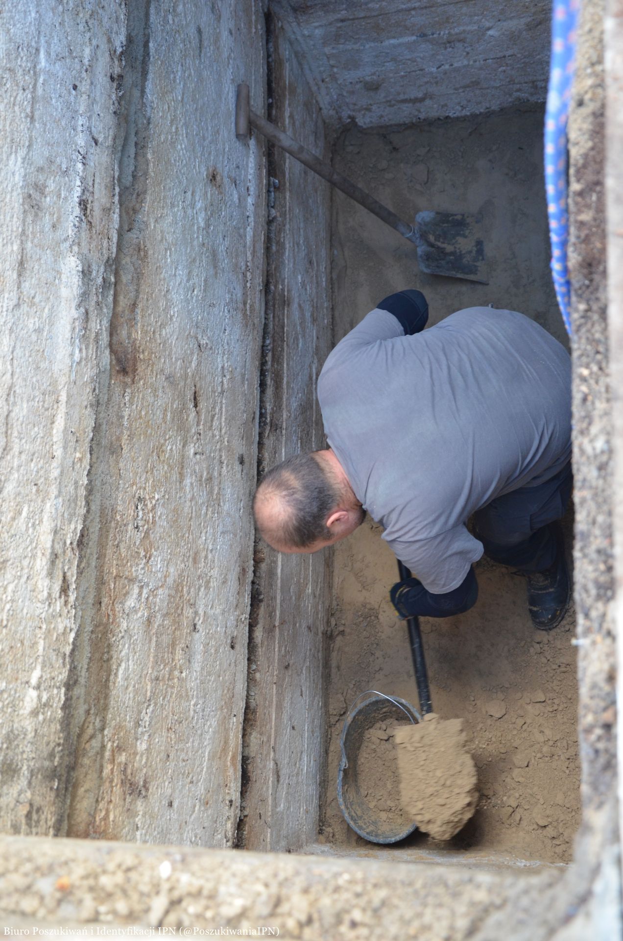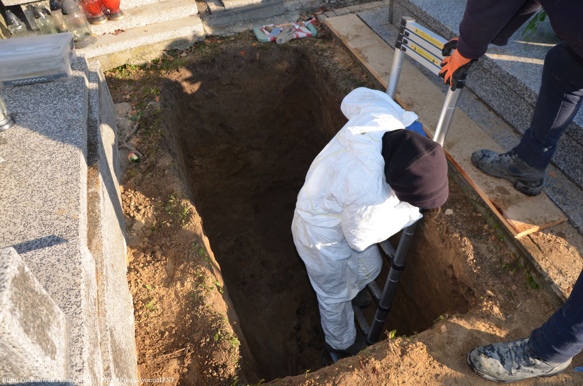 W dalszej części prac poszukiwano miejsca pochówku partyzanta poległego w starciu z grupą operacyjną UB-KBW. Działania te prowadzono w ramach zadań własnych Biura Poszukiwań i Identyfikacji. Według dokonanych ustaleń, ciało ofiary zostało przewiezione najpierw do Zakładu Anatomii Patologicznej UMCS w Lublinie, gdzie dokonano wstępnych oględzin, a następnie przekazano je do Zakładu Anatomii Prawidłowej Człowieka UMCS, gdzie miano dokonać maceracji. Jednak, z nieznanych powodów, już po kilku dniach zwłoki partyzanta przekazano na cmentarz przy ul. Unickiej w Lublinie, celem ich pogrzebania. W typowanym miejscu, pod wtórnym pochówkiem, na głębokości 1, 70 m odnaleziono pozostałości drewnianej skrzyni, a w niej szkielet mężczyzny bez czaszki. Przy szczątkach odnaleziono m.in. guziki wojskowe z orzełkiem, guziki plastikowe, kalosze, sprzączkę, ołówek, lufki do papierosów, fragmenty gazety, opakowanie na żyletki, lusterko. Po podjęciu szkieletu, ujawniono na głębokości 1,90 m pozostałości kolejnej skrzyni, a w niej liczne, zdefragmentowane kości ludzkie, pochodzące najprawdopodobniej z zakładu anatomii. Według wstępnych ustaleń szczątki należały do co najmniej dwóch osób dorosłych, nastolatka i dwójki dzieci.