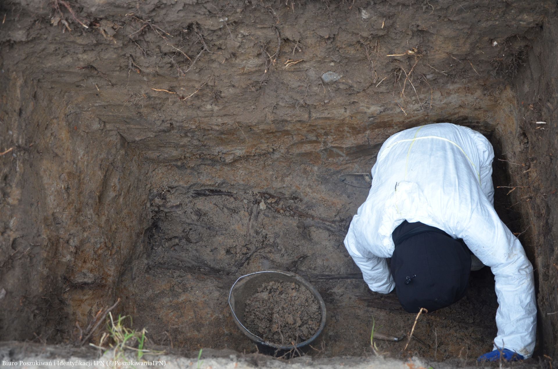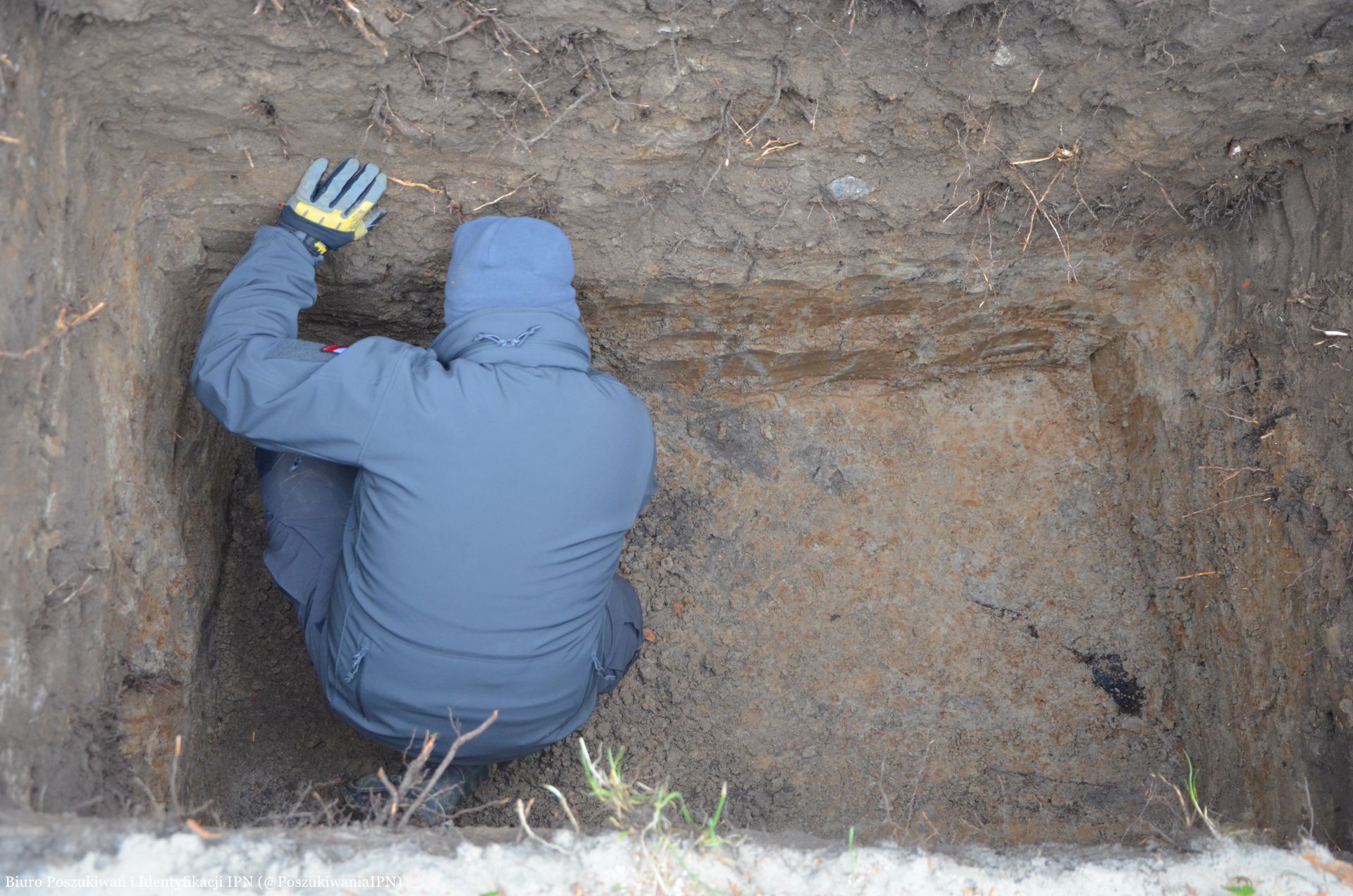Przedmiotem eksploracji był plac ziemny znajdujący się pomiędzy współczesnymi mogiłami. W toku przeprowadzonych prac, na głębokości 1,5 m, ujawniono spoczywający w pozostałościach trumny lub skrzyni szkielet mężczyzny. Według wstępnych oględzin w chwili zgonu liczył on 20-25 lat, co koresponduje z wiekiem poszukiwanej ofiary.