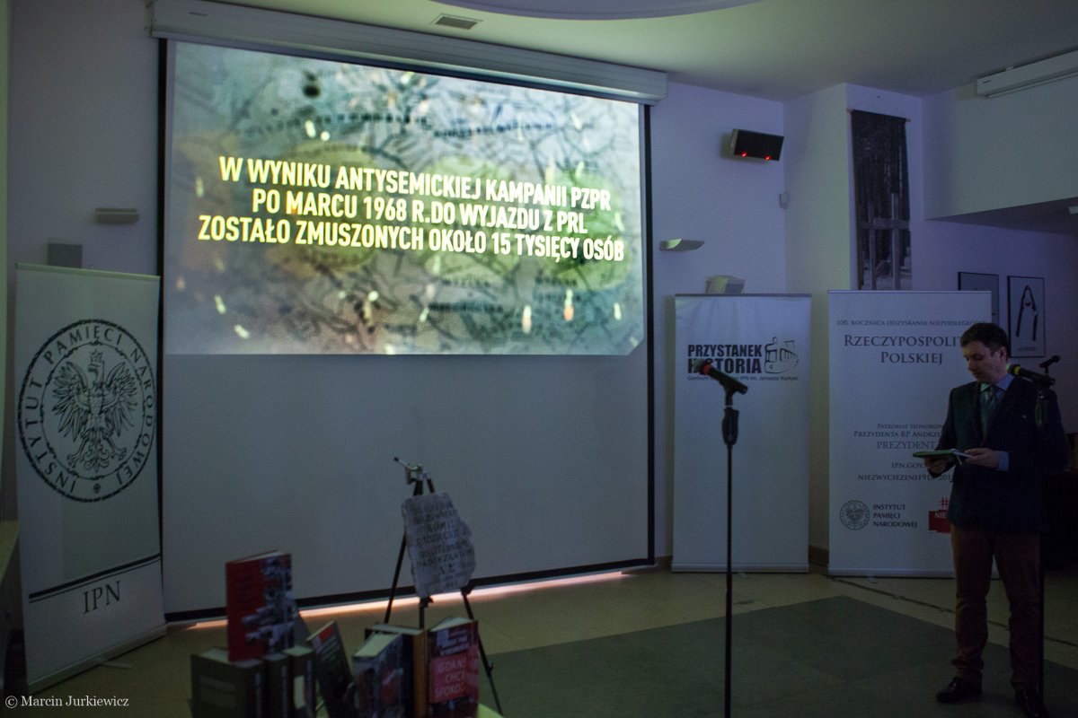 – Wielkiej kampanii przeciw polskiej inteligencji towarzyszyła potężna propagandowa akcja antysemicka – mówił dr Szarek. Tłumaczył, że władza komunistyczna wykorzystała ówczesny konflikt izraelsko-arabski, aby wyrzucić z Polski zmusić do wyjazdu z kraju co najmniej 15 tysięcy osób, obywateli PRL. – Ci ludzie byli wyrzucani z Polski, mogli wyjechać tylko w jedną stronę. To był często wyjazd na zawsze – przypomniał prezes IPN.