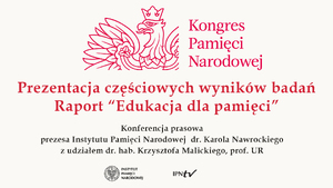 W poniedziałek 20 marca 2023 r. o godz. 10.00 w Centrum Edukacyjnym Przystanek Historia im. Janusza Kurtyki w Warszawie (ul. Marszałkowska 21/25) odbyła się konferencja prasowa prezesa IPN dr. Karola Nawrockiego z udziałem dr. hab. Krzysztofa Malickiego, prof. Uniwersytetu Rzeszowskiego, na której zostały przedstawione częściowe wyniki raportu „Edukacja dla pamięci”. Wyniki badań stały się impulsem do organizacji Kongresu Pamięci Narodowej, który odbędzie się w dniach 13–15 kwietnia 2023 r. na stadionie PGE Narodowy w Warszawie. Transmisja konferencji prasowej na kanale IPNtv