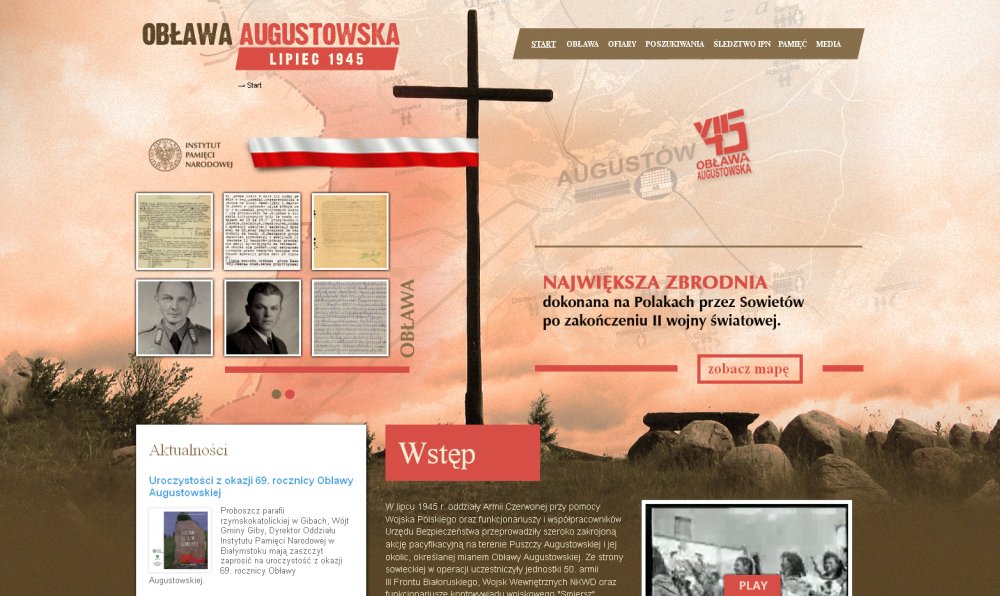 Obława Augustowska to największa powojenna zbrodnia na Polakach dokonana przez Sowietów. 592 osoby związane z polskim podziemiem akowskim na tym terenie wywieziono w nieznanym kierunku i zamordowano. Na portalu www.oblawaaugustowska.pl można znaleźć wyniki dotychczasowych badań naukowych nad przebiegiem Obławy, listy ofiar, ich zdjęcia, filmy, mapy, a także informacje o stanie śledztwa prowadzonego przez prokuratorów Instytutu Pamięci Narodowej.