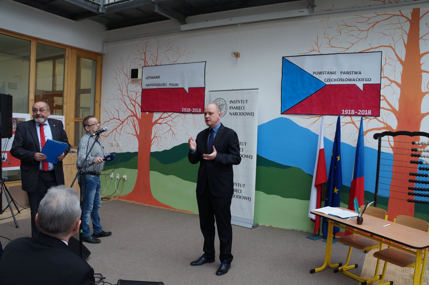 – Dziękuję za zaproszenie do tej niezwykłej szkoły, dziękuję młodzieży, która nas w tak wzruszający sposób powitała, śpiewając słynną pieśń Jana Kubisza „Płyniesz Olzo po dolinie”. IPN chce opowiadać o bogatej historii tej ziemi, od kilkunastu lat jest obecny na Zaolziu, współpracujemy nie tylko z Polakami – powiedział prezes IPN dr Jarosław Szarek.