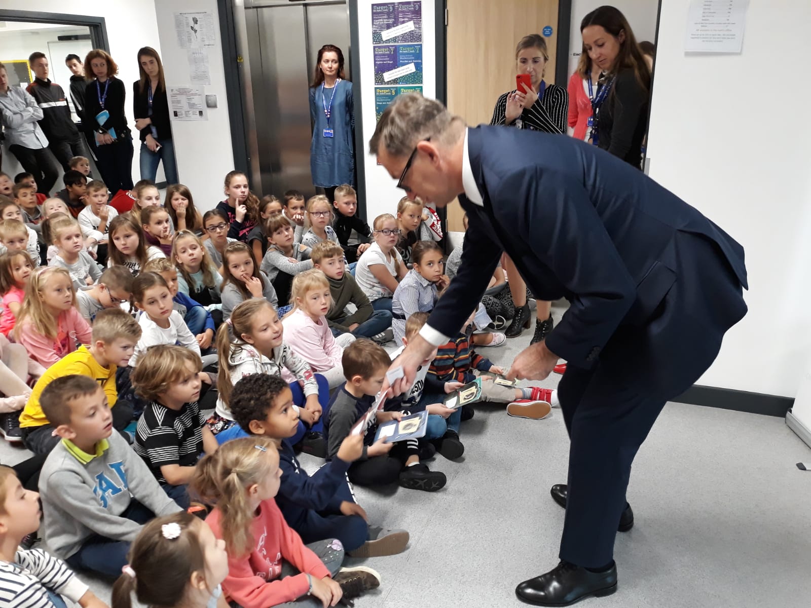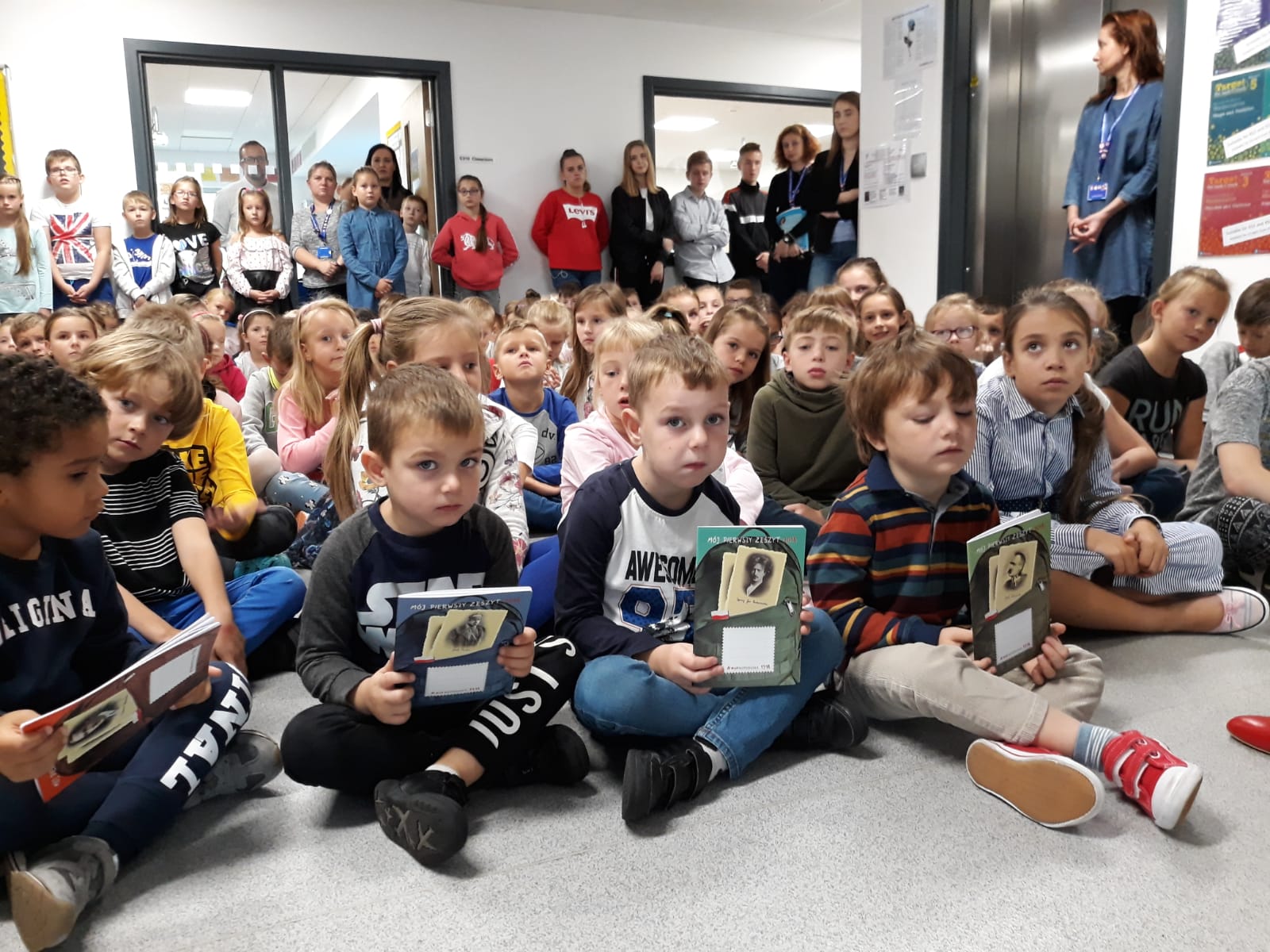 Niezapomnianą chwilą dla uczniów był moment wręczenia zeszytów „Mój pierwszy zeszyt" z wizerunkiem Ojców Niepodległości. Dr J. Szarek zwrócił uwagę na postać patronki szkoły nawiązując do wielkich bohaterów polskiej historii, w tym właśnie Ojców Niepodległości. Prezes zachęcił nauczycieli do korzystania z szerokiej oferty edukacyjnej IPN realizowanej w ramach Przystanku Historia IPN Londyn.
