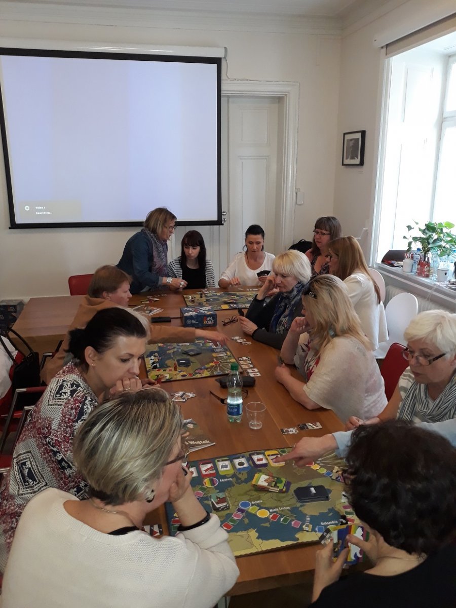 W ramach sobotnich warsztatów „Gry edukacyjne w nauczaniu historii” nauczyciele języka ojczystego z polskich szkół w Szwecji zapoznali się z ofertą edukacyjną BEN IPN oraz z możliwościami dydaktycznymi, jakie dają gry planszowe w edukacji szkolnej. Podczas warsztatów prowadzonych przez Karola Madaja, autora gier edukacyjnych IPN, nauczyciele poznali wszystkie warianty gry „ZnajZnak” oraz najnowszej produkcji IPN – „Miś Wojtek”. Każda ze szkół biorących udział w warsztatach otrzymała od IPN gry edukacyjne będące przedmiotem warsztatów.