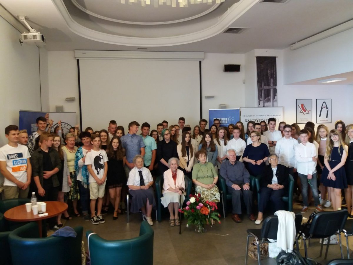 Na zdjęciu: uczestnicy finałowych prezentacji, przedstawiający notacje 7 czerwca br., wraz ze świadkami historii, którzy podzielili się swoimi wspomnieniami.