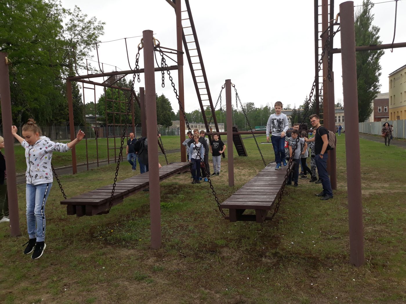 Cóż to był za dzień. Pogoda dopisała i udało się zwiedzić bazę 1 Brygady Pancernej. Niestety uczestnicy turnieju mogli zobaczyć tylko namiastkę wyposażenia najlepszej brygady w Polsce, ale i tak było warto. Każdy mógł wejść to najlepszego czołgu, jakim dysponuje polska armia, czyli Leoparda 2, i samemu przekonać się, czy jest w nim odpowiednio dużo miejsca dla 4 członków załogi. Dzięki żołnierzom służącym w jednostce udało się zaobserwować, jak taki czołg się porusza i jak się go tankuje. Zgadnijcie, ile Leopard spala paliwa i czy samemu byłoby was stać na jego utrzymanie? Otóż na 100 km w warunkach bojowych potrafi spalić nawet 800 litrów paliwa. Kolejnym punktem była strzelnica, na której odbywały się szkolenia z zakresu rzucania granatem. Żołnierz po odbezpieczeniu granatu ma ok 2 sekund, aby go rzucić. To nie takie proste, jak się wydaje – po prostu rzucić granatem, o czym przekonali się uczestnicy turnieju. Najpierw trzeba przejść specjalne szkolenie z zakresu jego budowy i zagrożeń wynikających z nieodpowiedniego użycia ważącego ok 360 do 700 g granatu ćwiczebnego. Ostatnim etapem wizyty był tor przeszkód, który żołnierz musi pokonać by zachować kondycję. Oj, było różnie z kondycją naszych niedźwiadków. Pod czujnym okiem opiekunów wszystkie jednak dały radę i z uśmiechem ukończyły … „bieg”.