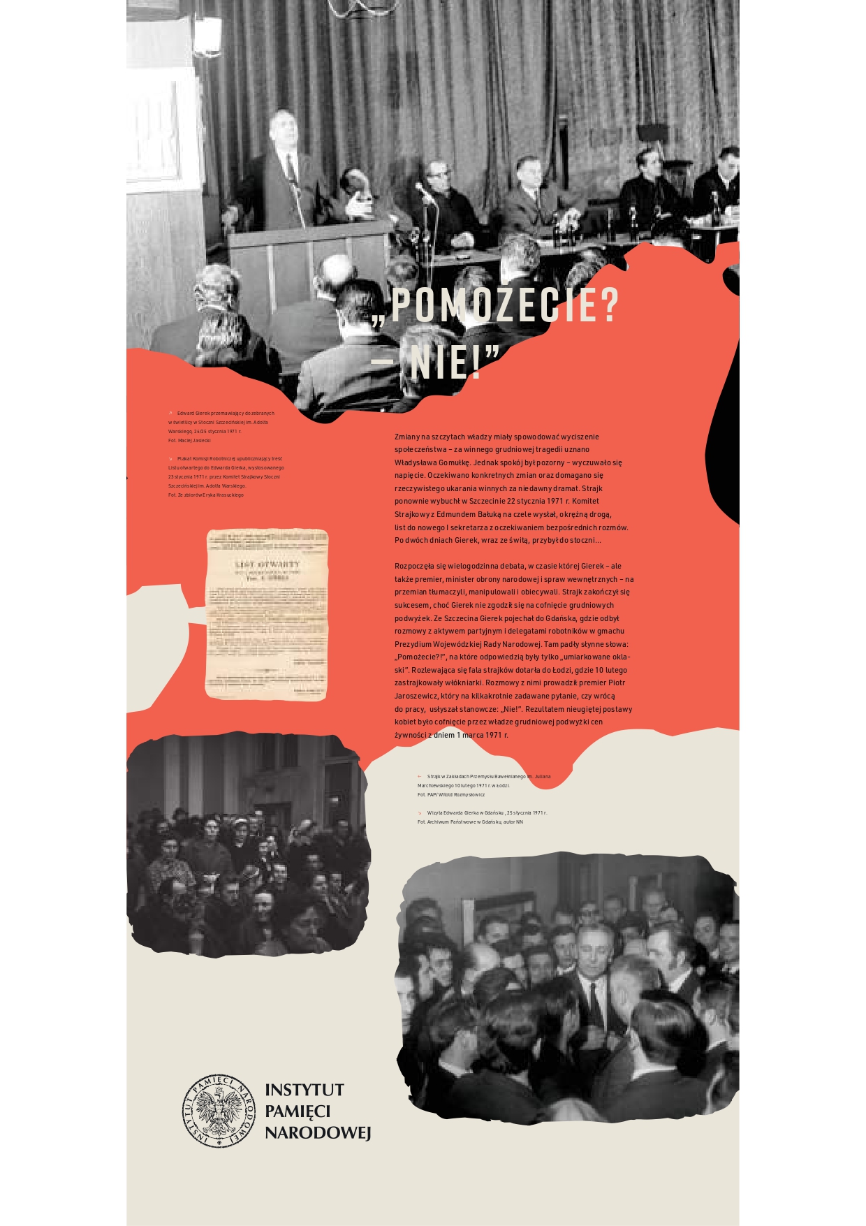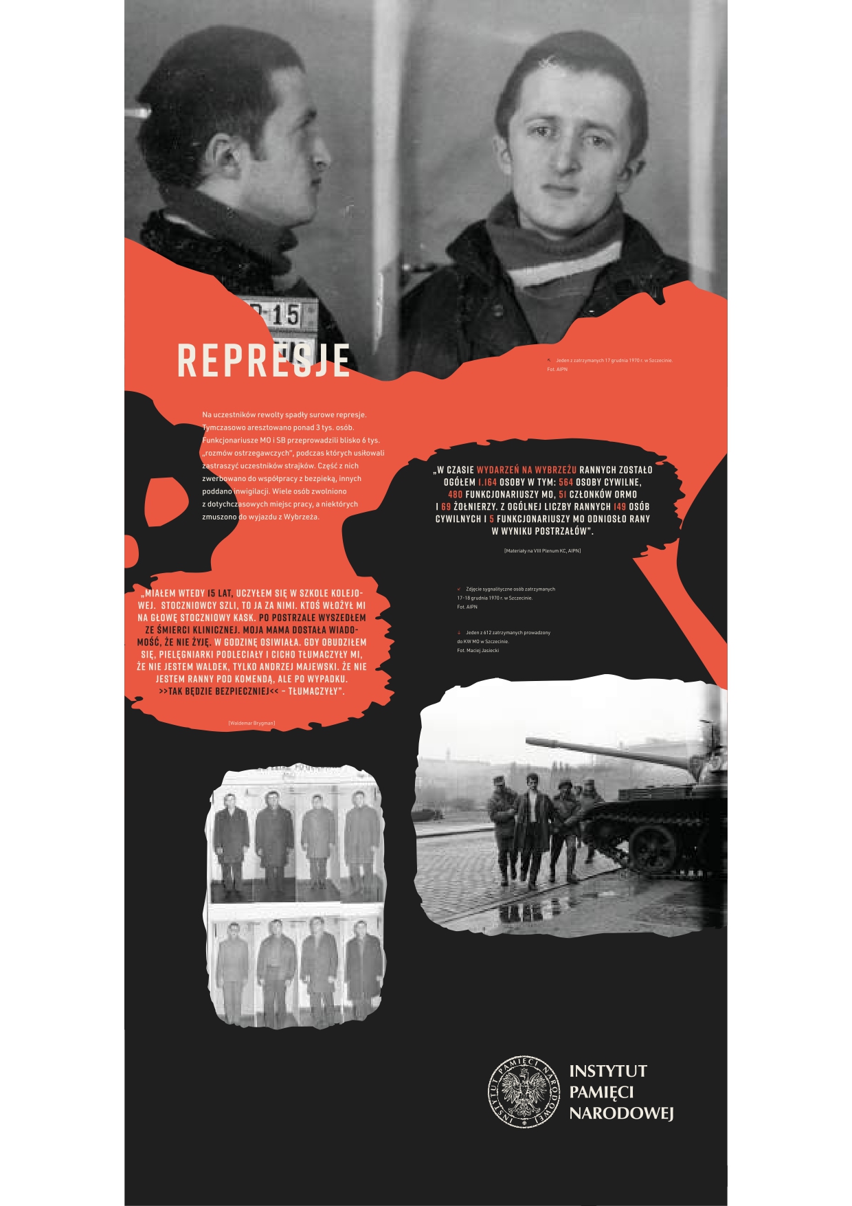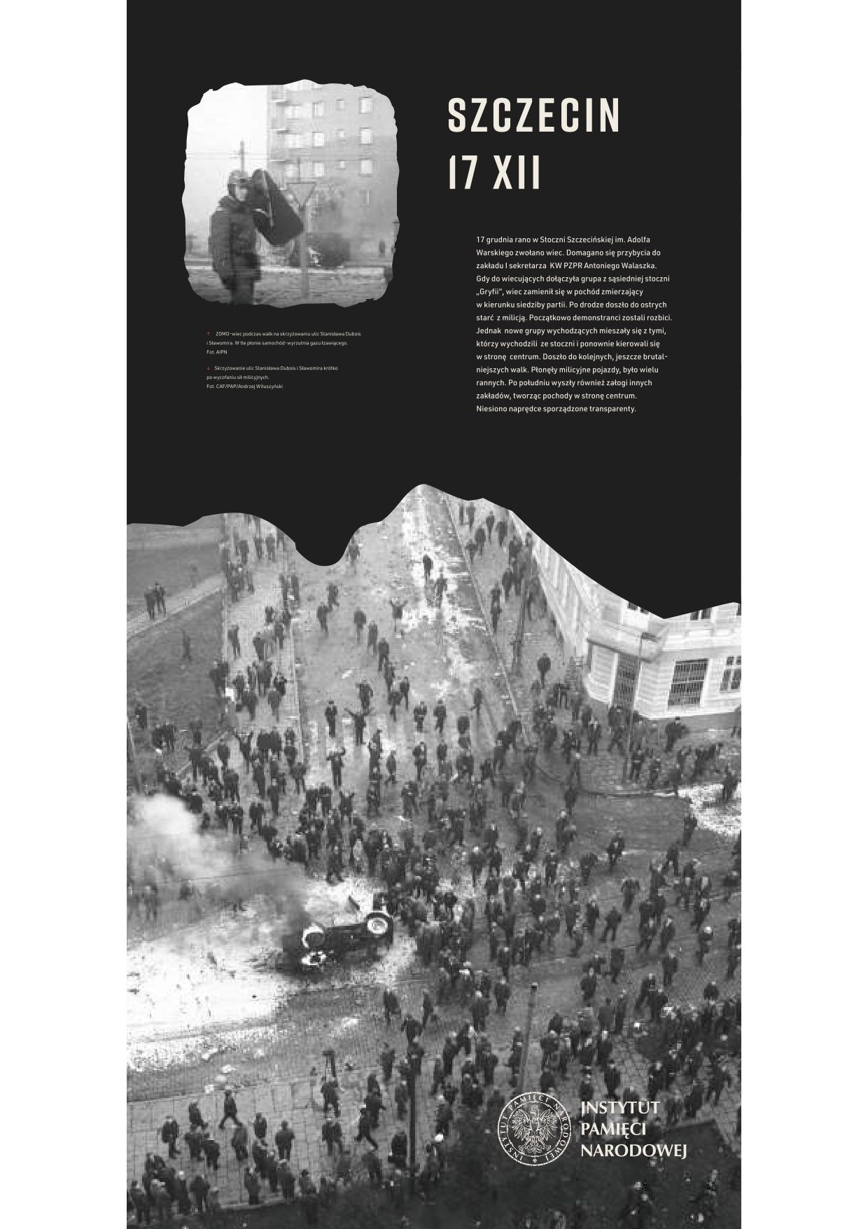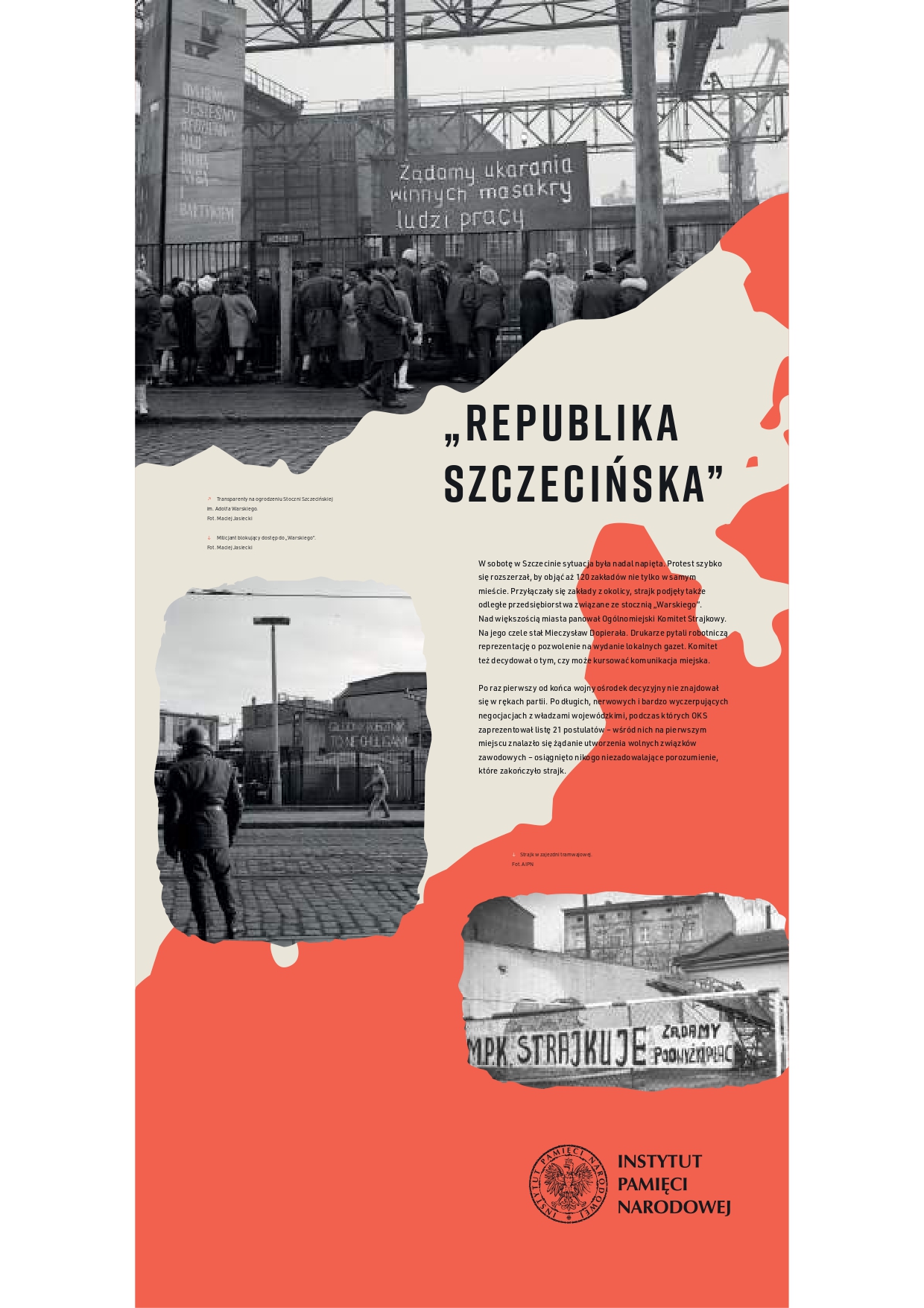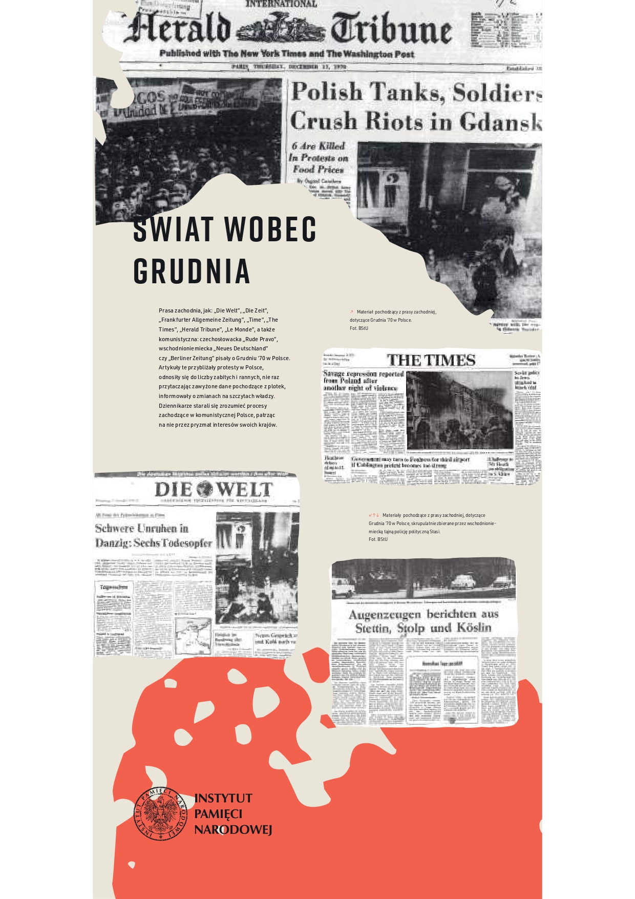Wystawa prezentuje historię robotniczego protestu w grudniu 1970 roku. Według oficjalnych danych zginęło wówczas 45 osób, a setki zostało rannych. Wydarzenie, które w istotny sposób wpłynęło na historię PRL, przedstawione zostało w ujęciu ogólnokrajowym; ukazuje strajki w Gdańsku, Szczecinie i pozostałych miejscach. Jedna z plansz poświęcona została na reakcje świata wobec protestu, w tym przez pryzmat nie publikowanych dotąd w Polsce artykułów.