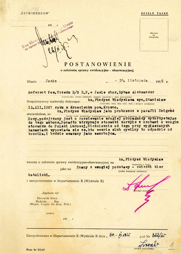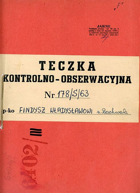 Okładka teczki kontrolno-obserwacyjnej przeciwko ks. Władysławowi Findyszowi IPN-Rz-052/400 |