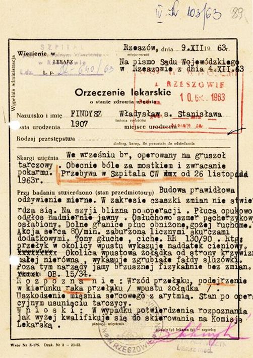 W czerwcu 1962 r. został dziekanem dekanatu żmigrodzkiego. W latach Soboru Watykańskiego II aktywnie włączył się w akcję "soborowego czynu dobroci". W jej ramach, w swoich odezwach do parafian wzywał do odnowienia życia religijnego, powrotu do chrześcijańskich obyczajów i odnowy moralnej. Jego aktywność spotkała się z ostrą reakcją władz, 25 listopada 1963 r. Prokuratura Wojewódzka w Rzeszowie wydała postanowienie o zastosowaniu wobec księdza tymczasowego aresztu za "prześladowanie i dyskryminowanie ludzi niewierzących". 17 grudnia 1963 r. ksiądz Findysz został skazany przez Sąd Wojewódzki w Rzeszowie na karę dwóch lat i sześciu miesięcy pozbawienia wolności za "zmuszanie do praktyk religijnych". Wyrok odsiadywał w więzieniach w Rzeszowie i Krakowie, gdzie był poniżany, nękany fizycznie i psychicznie. Nie zezwolono mu na poddanie się, zaplanowanej wcześniej, operacji gardła, w związku podejrzeniem nowotworu. Dochodzenie, przewód sądowy oraz przeżycia więzienne miały duży wpływ na rozwój choroby księdza. Prawie cały okres pozbawienia wolności spędził w szpitalu więziennym. Wyczerpany i osłabiony chorobą (schudł o 30 kg) został zwolniony z więzienia 29 lutego 1964 r. Powrócił do swojej parafii i w miarę możliwości włączył się w posługę duszpasterską. W lipcu pogorszył się stan zdrowia księdza, zmarł 21 sierpnia 1964 r. Pochowany został na cmentarzu parafialnym w Nowym Żmigrodzie.