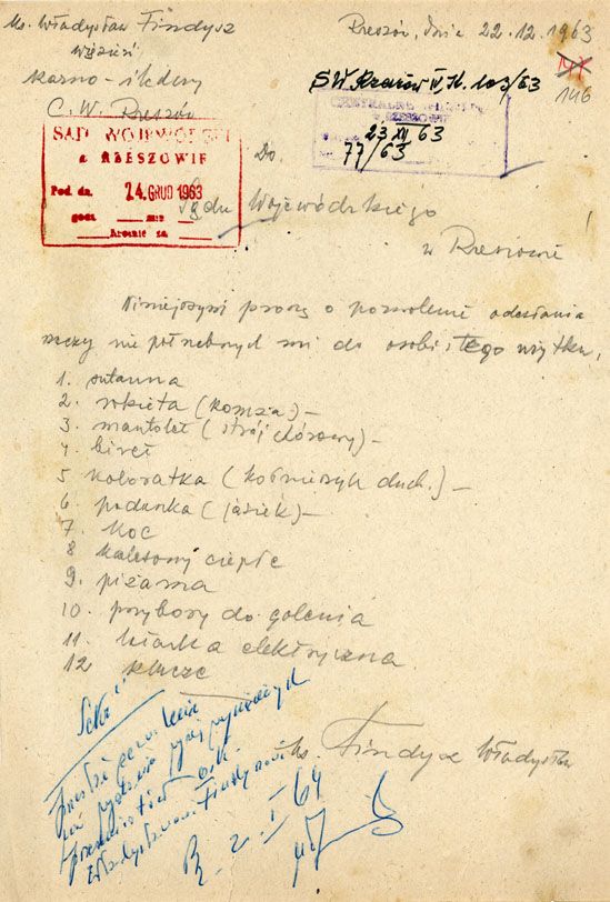 Kwestionariusz personalny ks. Władysława Findysza /fragment/ opracowany przez Referat ds. Bezpieczeństwa KPMO w Jaśle IPN-Rz-052/400, k. 2, 8 |