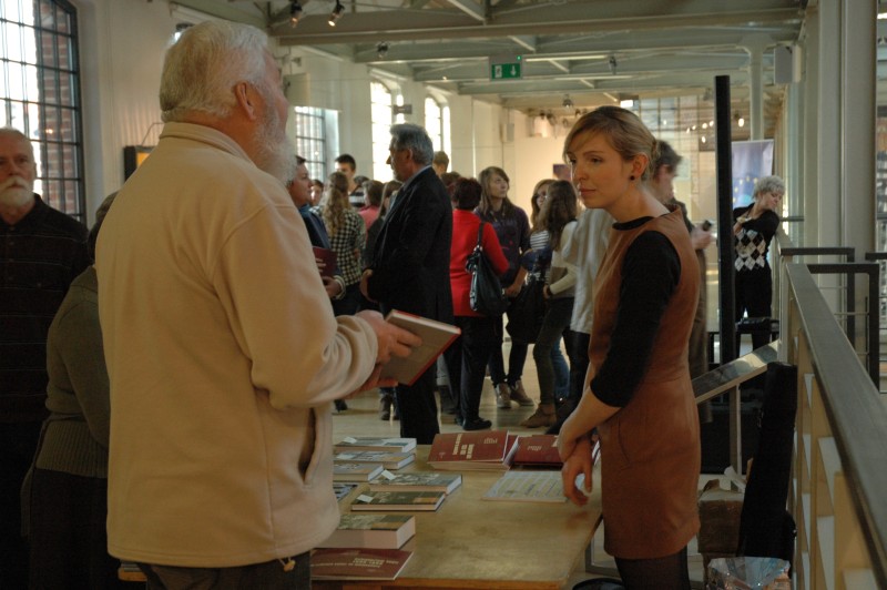 Prezentacja wystawy „Kalendarium Łodzi 1939-1989. Od czterech kultur do monokultury". Na pierwszym planie Milena Przybysz (OBEP IPN w Łodzi) -