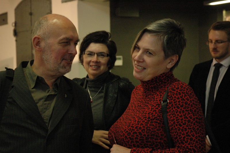 Na pierwszym planie od lewej: Grzegorz Wróbel (MTN w Łodzi), Paweł Kowalski (OBEP IPN w Łodzi), Magdalena Zapolska-Downar (OBEP IPN w Łodzi, współautorka wystawy) -